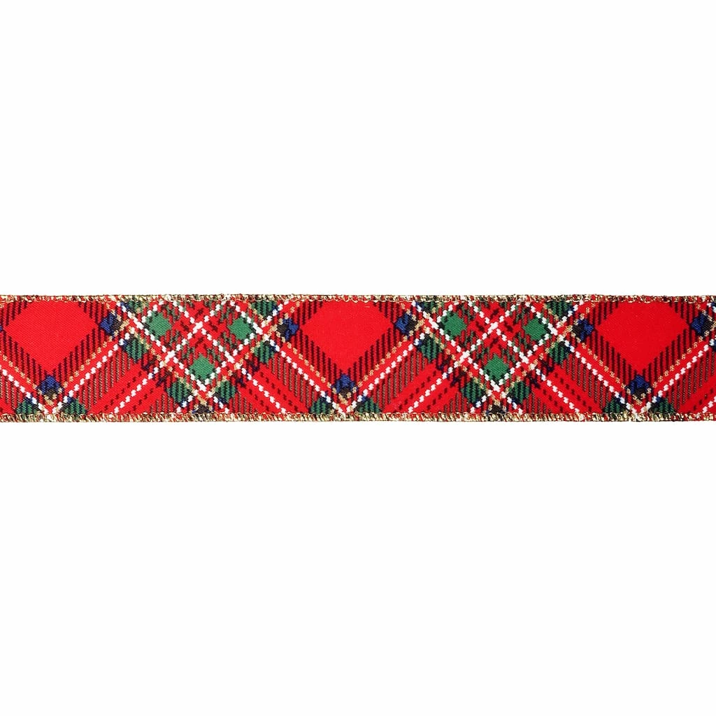 Give your Christmas gifts and crafts a bit of cheer with this wired taffeta ribbon from Celebrate It. With a festive red tartan pattern, use to embellish ornaments, pair with lights and greenery for charming garlands and wreaths, put the finishing touch on presents and more!