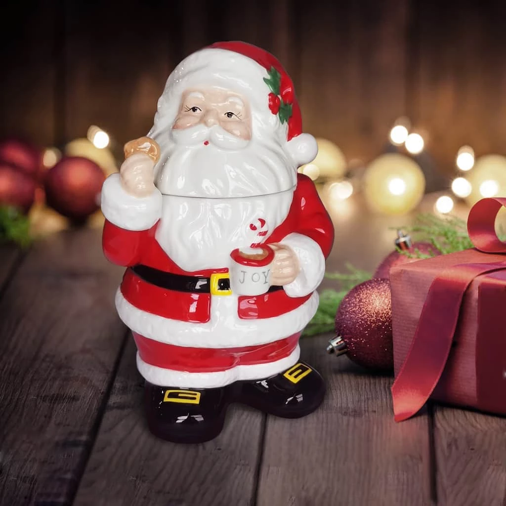 This ceramic cookie jar is perfect for storing fresh-baked Christmas treats. Place it on your kitchen counter for friends and family to admire and enjoy!