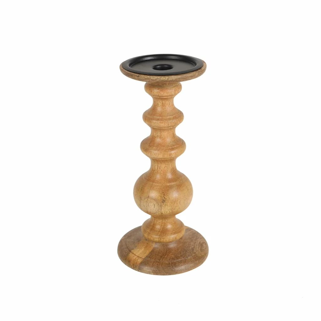 Bring a touch of Christmas magic to your space by incorporating the lovely, soft glow of candlelight into your dΓ©cor. Paired with a festive pillar candle, this wooden candlestick is sure to add a festive feel to your home illuminating lush greenery and holiday collectibles on your living room mantel or a prominent side table.