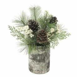 This tabletop mixed pine and berry arrangement features snow accents and is perfect for adding to your winter décor. Place it on your table or counter for the perfect look!
