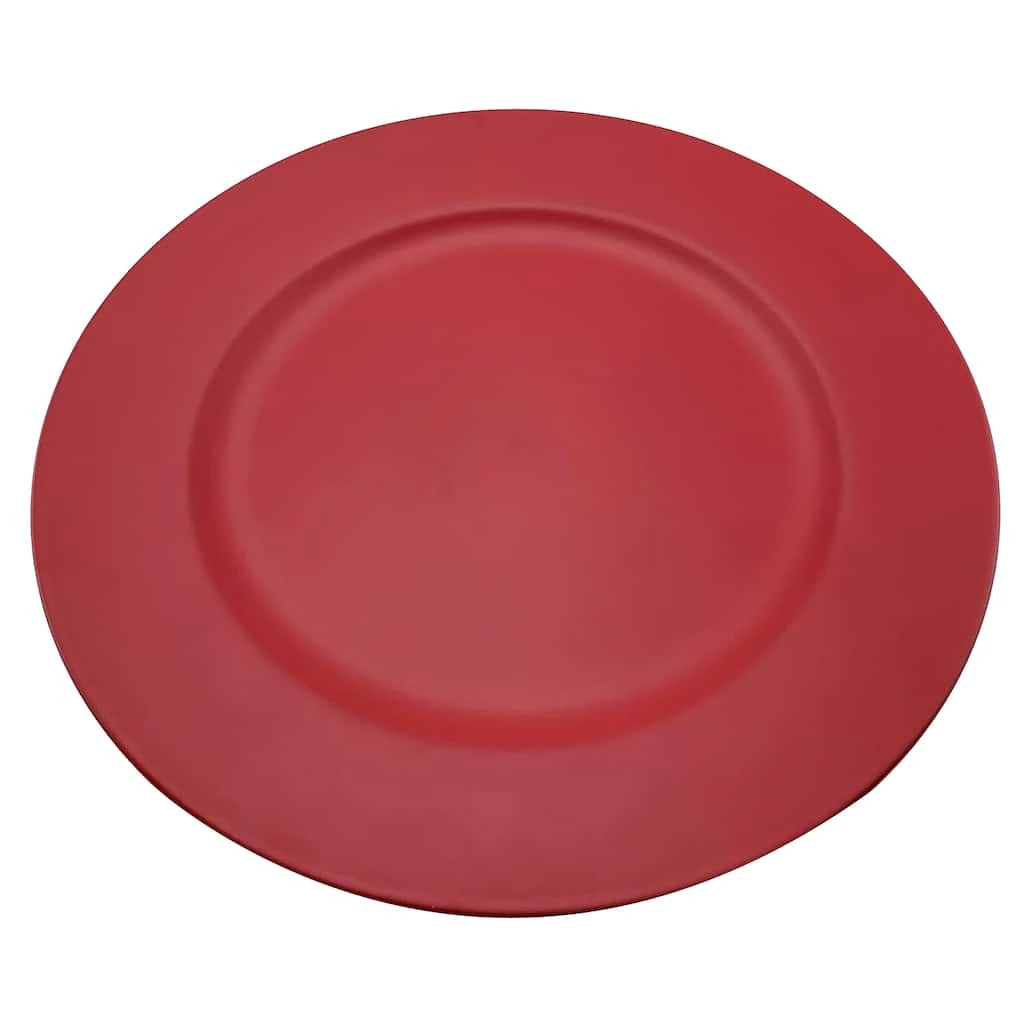 These red chargers are perfect for lending your Christmas table a festive touch. Pair them with holiday napkins, plates, and flatware to complete the look.