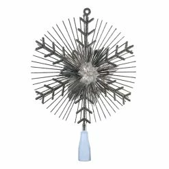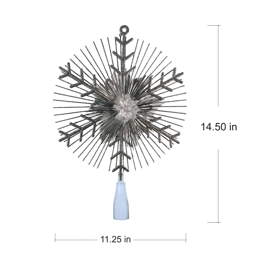 This stunning silver tree topper will bring a wonderful enchanting shimmer to your holiday tree. With a lovely tinsel starburst design accented by glitter and clear sparkling lights, this piece will give a fantastic, festive finish to your Christmas decorating.