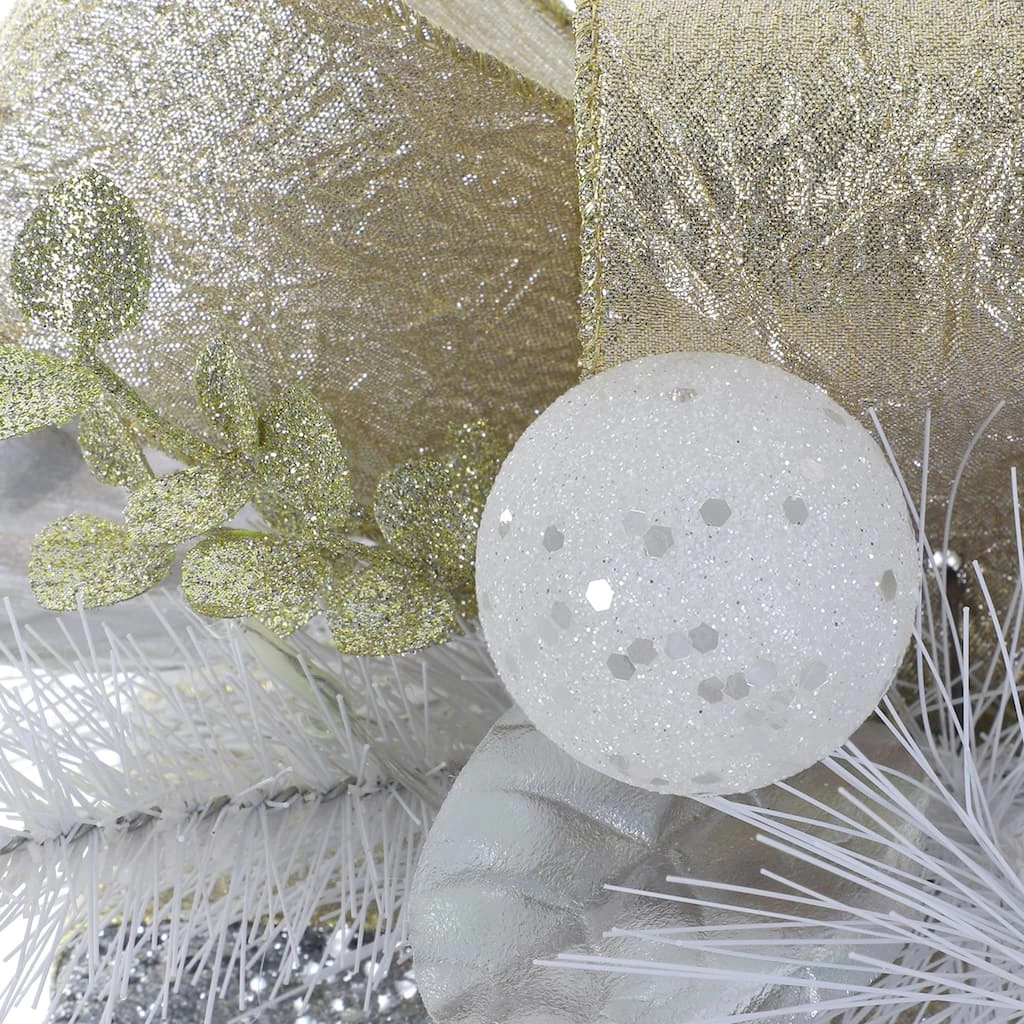 The glittery pine gift box is an attractive accent piece for adding to your holiday decorating scheme. This piece features a handcrafted gift box with pine branch tips, ornaments, and a bow. It is pre-lit with battery-operated LED lights. Display this holiday trimming in indoor locations.