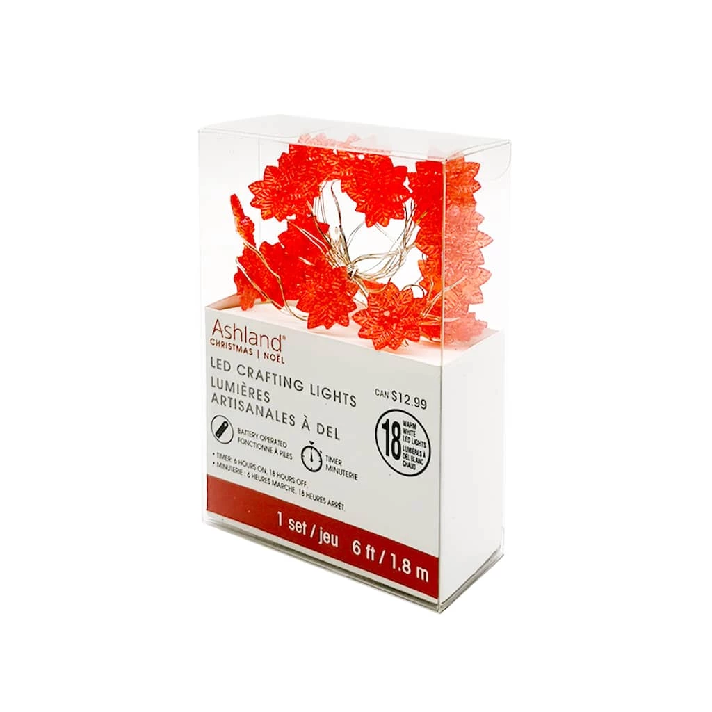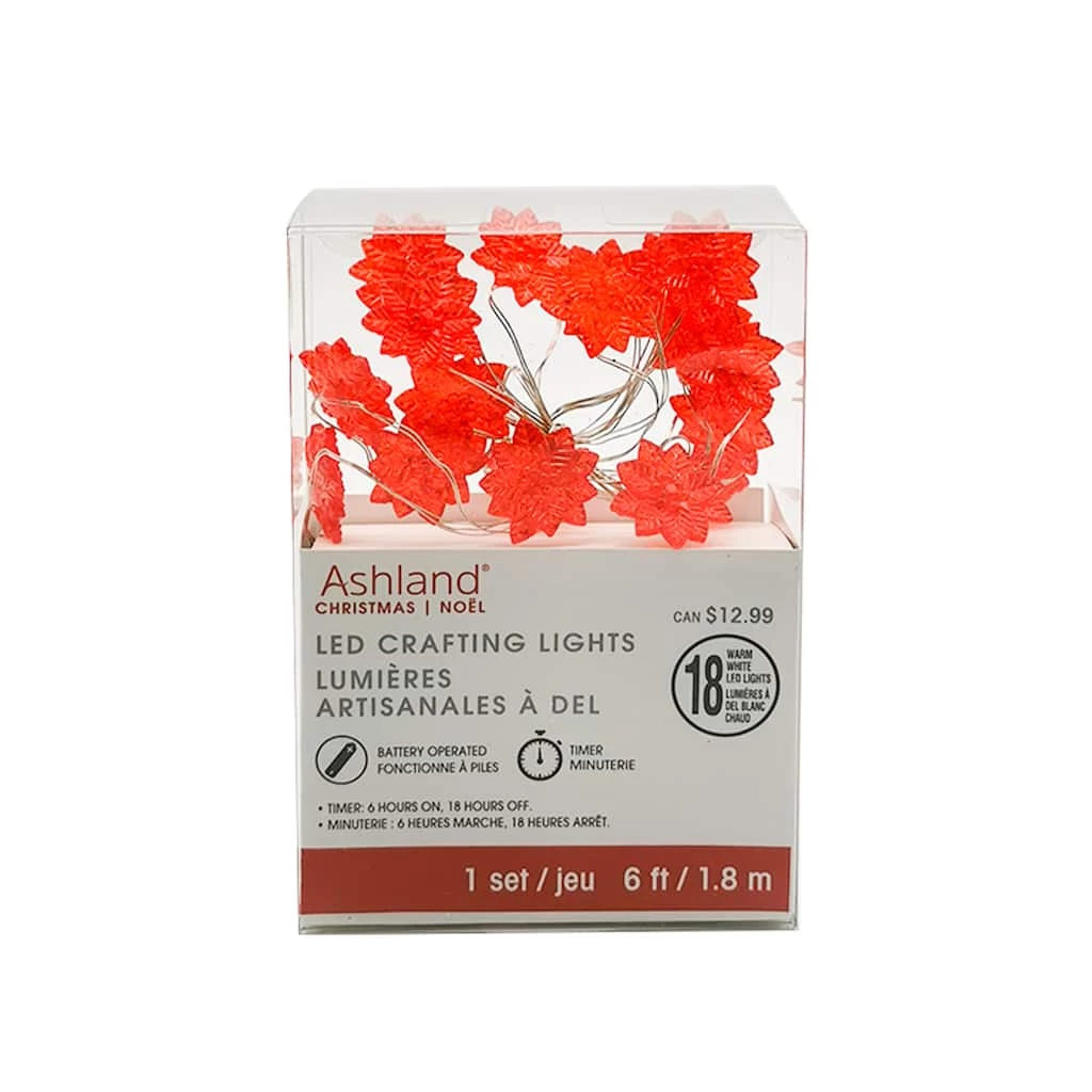 Make the season bright with these festive poinsettia icon crafting lights from Ashland. These warm white battery-operated LED bulbs are ideal for use in handmade gifts and holiday floral dΓ©cor to display in your home this Christmas season.