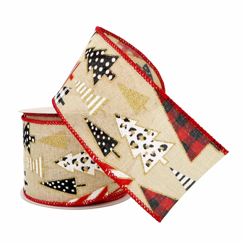 This faux linen ribbon features a Christmas tree design and is perfect for adding a decorative touch to your gift wrapping or DIY projects. Accent gift boxes or handmade presents, this ribbon will be a great addition to your holiday crafting supplies.