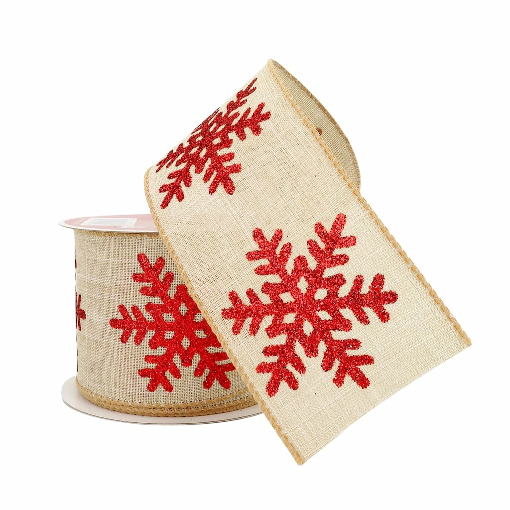 Give your Christmas gifts and craft projects a lovely bit of traditional beauty with this faux linen snowflake ribbon from Celebrate It. Use to embellish ornaments, pair with lights and greenery to create festive garlands and wreaths, dress up floral arrangements, put the finishing touch on presents and more!