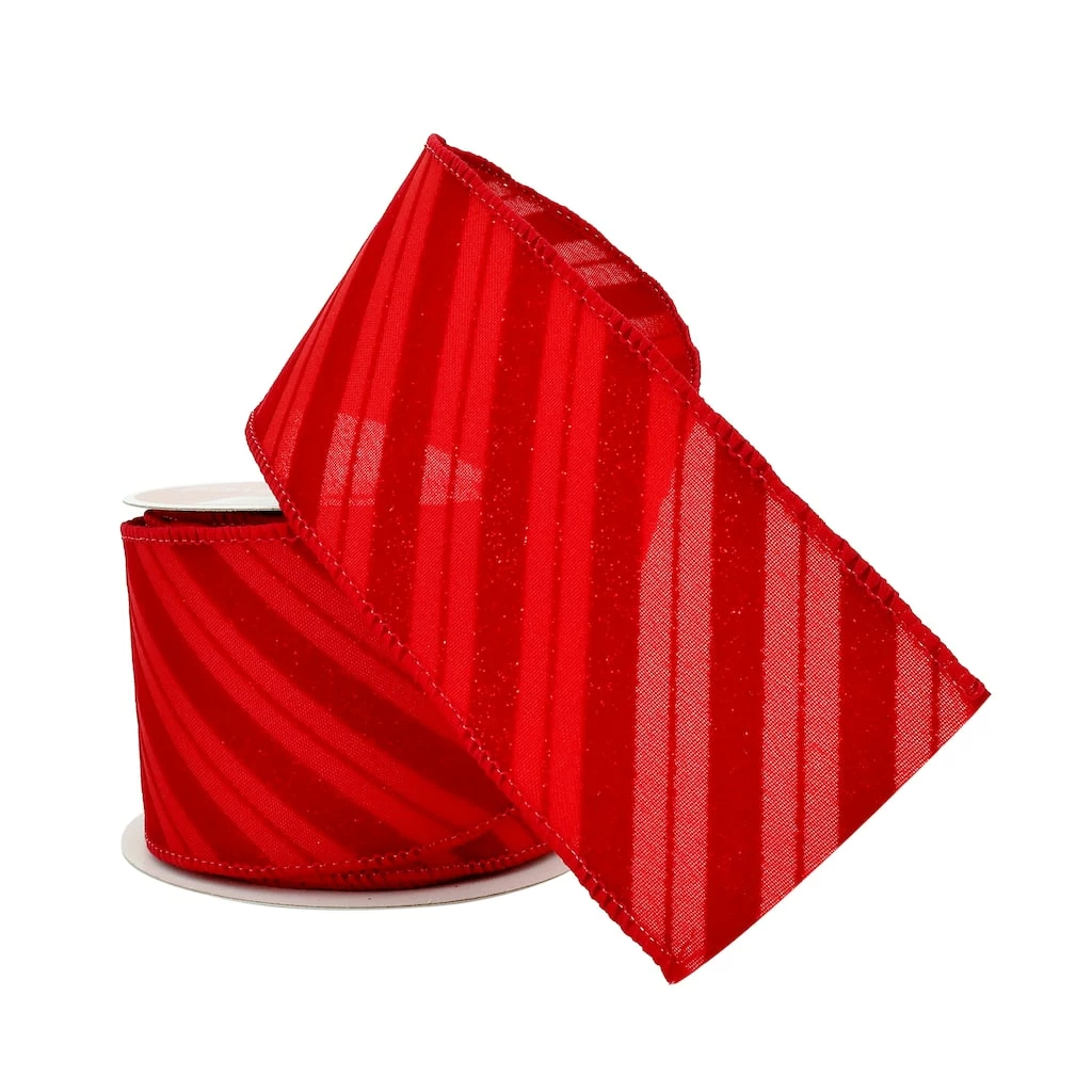 Give your Christmas gifts and crafts a lovely bit of cheer with this wired taffeta ribbon from Celebrate It. With a festive pattern of diagonal stripes, use to embellish ornaments, pair with lights and greenery for lovely garlands and wreaths, put the finishing touch on presents and more!