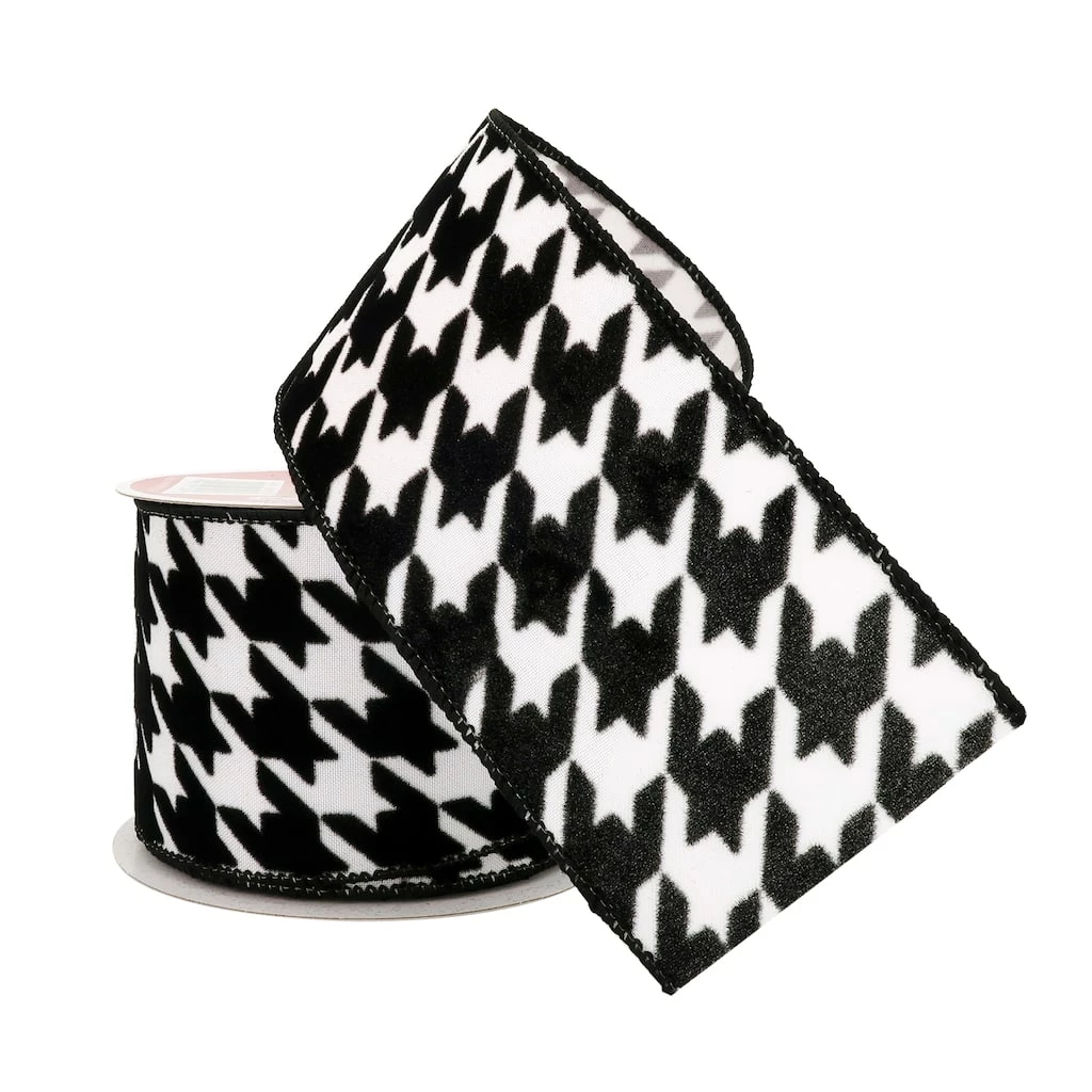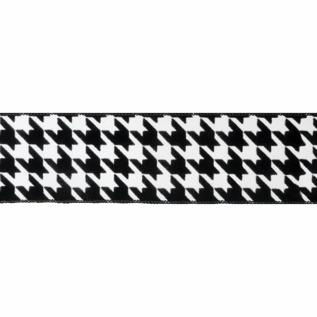 Give your Christmas gifts and crafts a bit of cheer with this wired taffeta ribbon from Celebrate It. With a festive black and white houndstooth pattern, use to embellish ornaments, pair with lights and greenery for charming garlands and wreaths, put the finishing touch on presents and more!