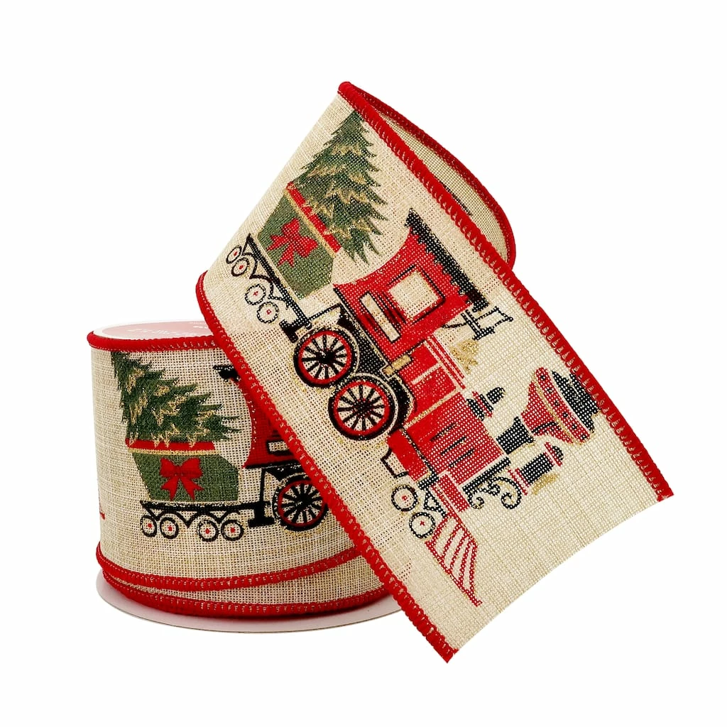 This faux linen ribbon features a train design and is perfect for adding a decorative touch to your gift wrapping or DIY projects. Accent gift boxes or handmade presents, this ribbon will be a great addition to your holiday crafting supplies.