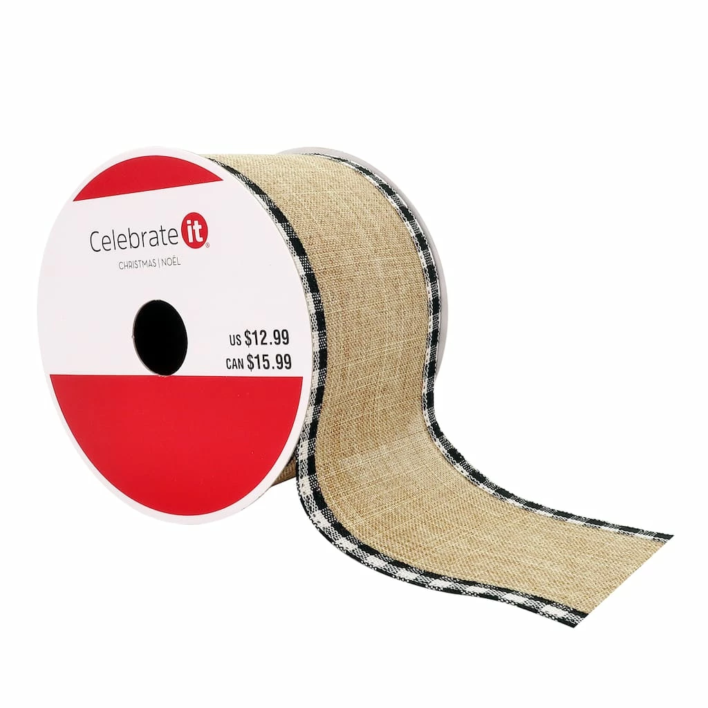 This faux linen ribbon features a gingham edge design and is perfect for adding a decorative touch to your gift wrapping or DIY projects. Accent gift boxes or handmade presents, this ribbon will be a great addition to your holiday crafting supplies.