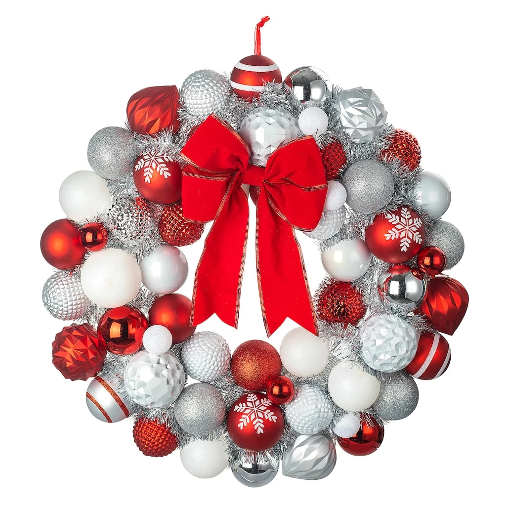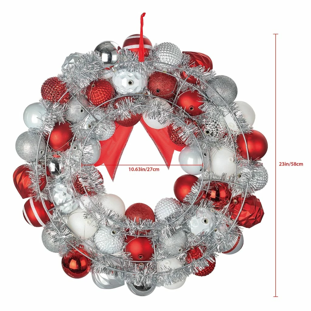 This ball ornament wall wreath is perfect for displaying in your living room for Christmas. Pair it with other festive wall accents for the perfect look!