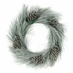This pinecone wreath accented with a bundle of pine needles will add a lovely touch of cheer to your holiday dΓ©cor. Add bird figurines, berries and ribbon, lights and more for a wonderful festive display to greet your guests this Christmas season.
