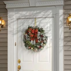 Bring the holiday cheer into your home with this 24” Christmas Magnolia Mix Pine Wreath. Decorated with a fabric bow and pre-strung with 50 warm white LED lights with remote control, this wreath is perfect for any entryway or fireplace mantel.