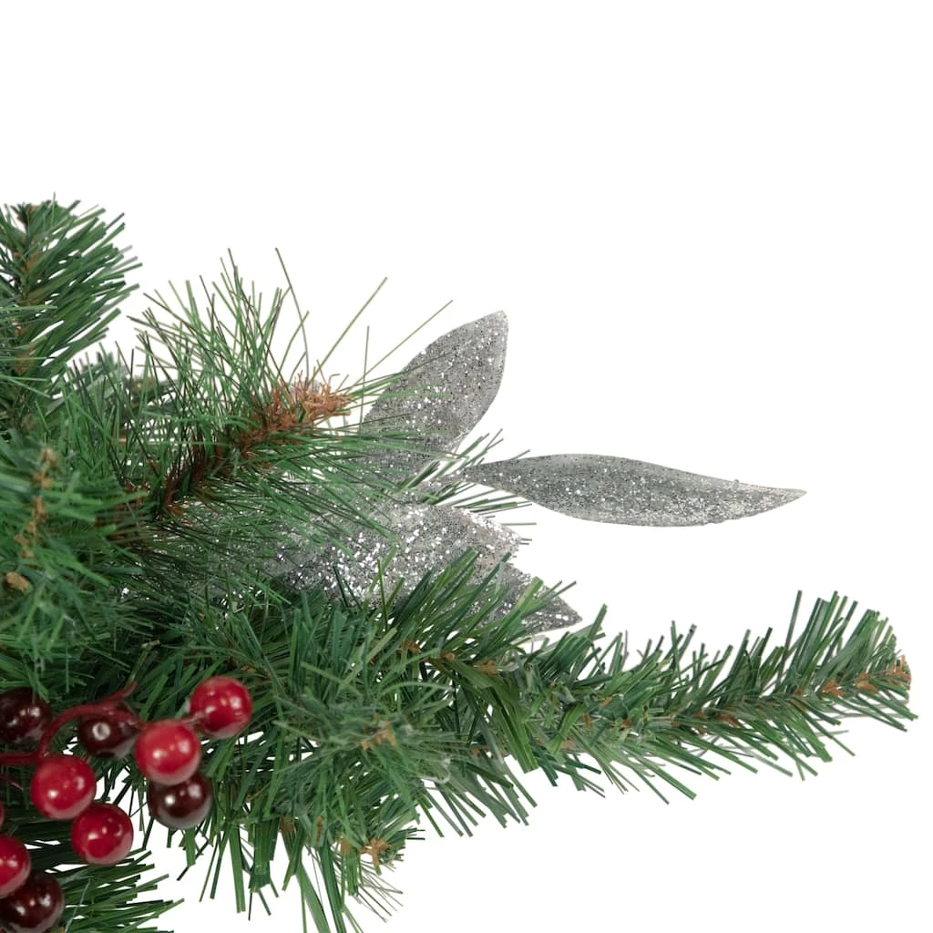 - Accented with red ball ornaments frosted pine cones glittered leaves and red berries