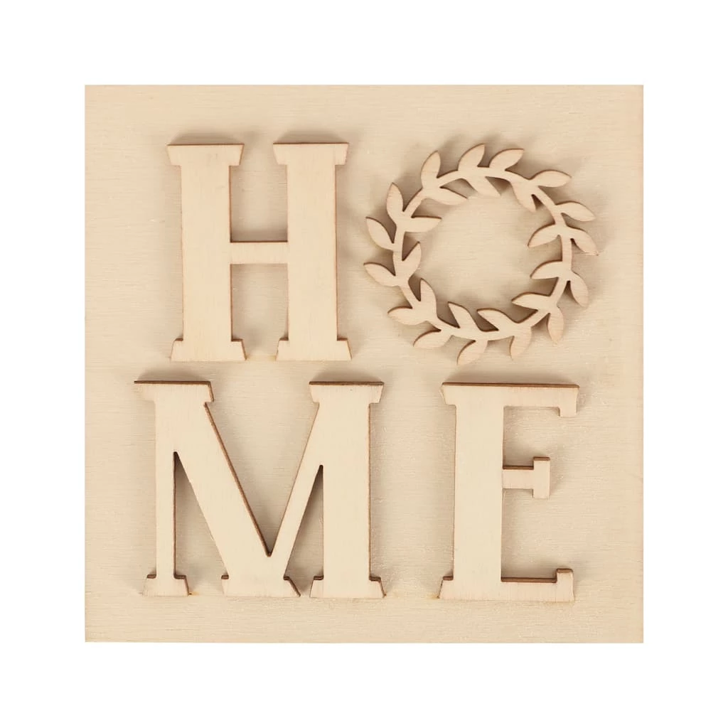 Bring your own special flourish to your holiday tree with this unfinished square wood plaque featuring the word “Home.” Embellish with paint, glitter, ribbon and more for a festive piece that is sure to invite Christmas cheer!