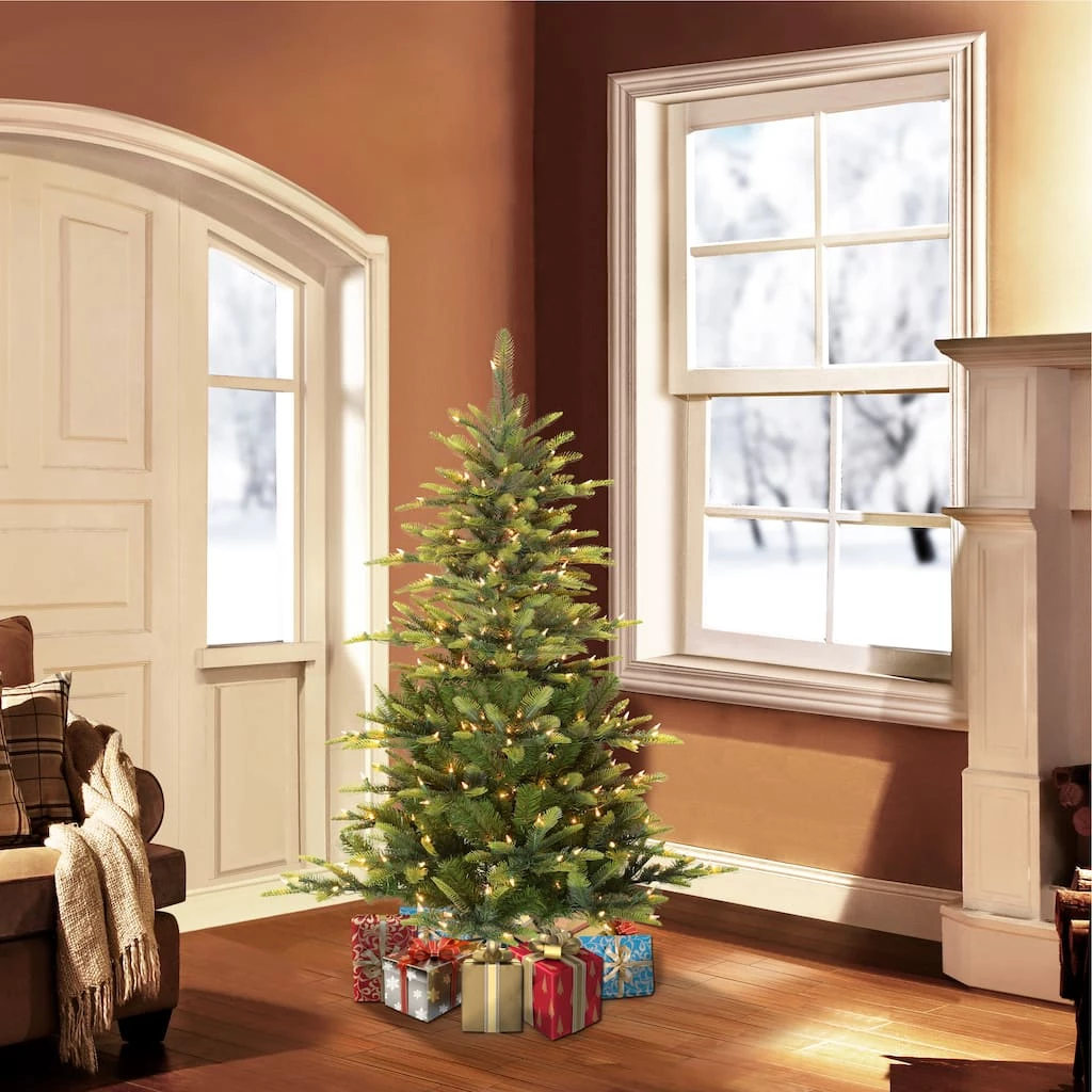 Deck the halls with the Puleo International Aspen fir tree, inspired by lush wintry forests. The incorporated lights means no more climbing ladders to string lights, saving decorating time. When a single bulb burns out, the other lights on the strand will stay lit for your convenience. We recommend changing the burnt bulb to prevent future outages. Hypoallergenic and needle-shed resistant, the tree is an great alternative to a yearly real tree purchase. With easy to assemble pieces and an included base, your house will be ready for the holidays faster than you can say “Rockin’ Around the Christmas Tree.”