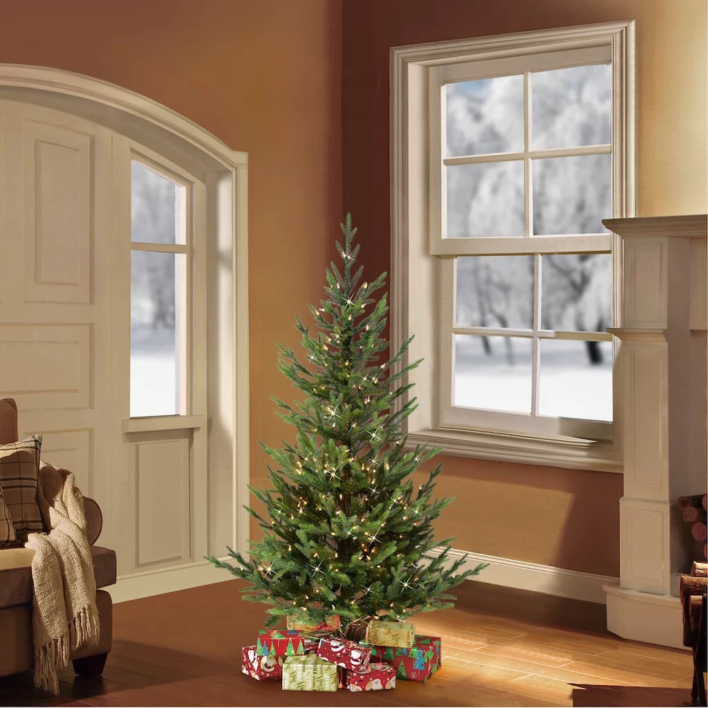 Deck the halls with the Puleo International pre-lit natural fir tree, inspired by lush wintry forests. Features Insta-Shape memory wire for super easy fluffing of your tree. The incorporated lights means no more climbing ladders to string lights, saving decorating time. When a single bulb burns out, the other lights on the strand will stay lit for your convenience. With easy to assemble pieces and an included base, your house will be ready for the holidays faster than you can say “Rockin’ Around the Christmas Tree.”