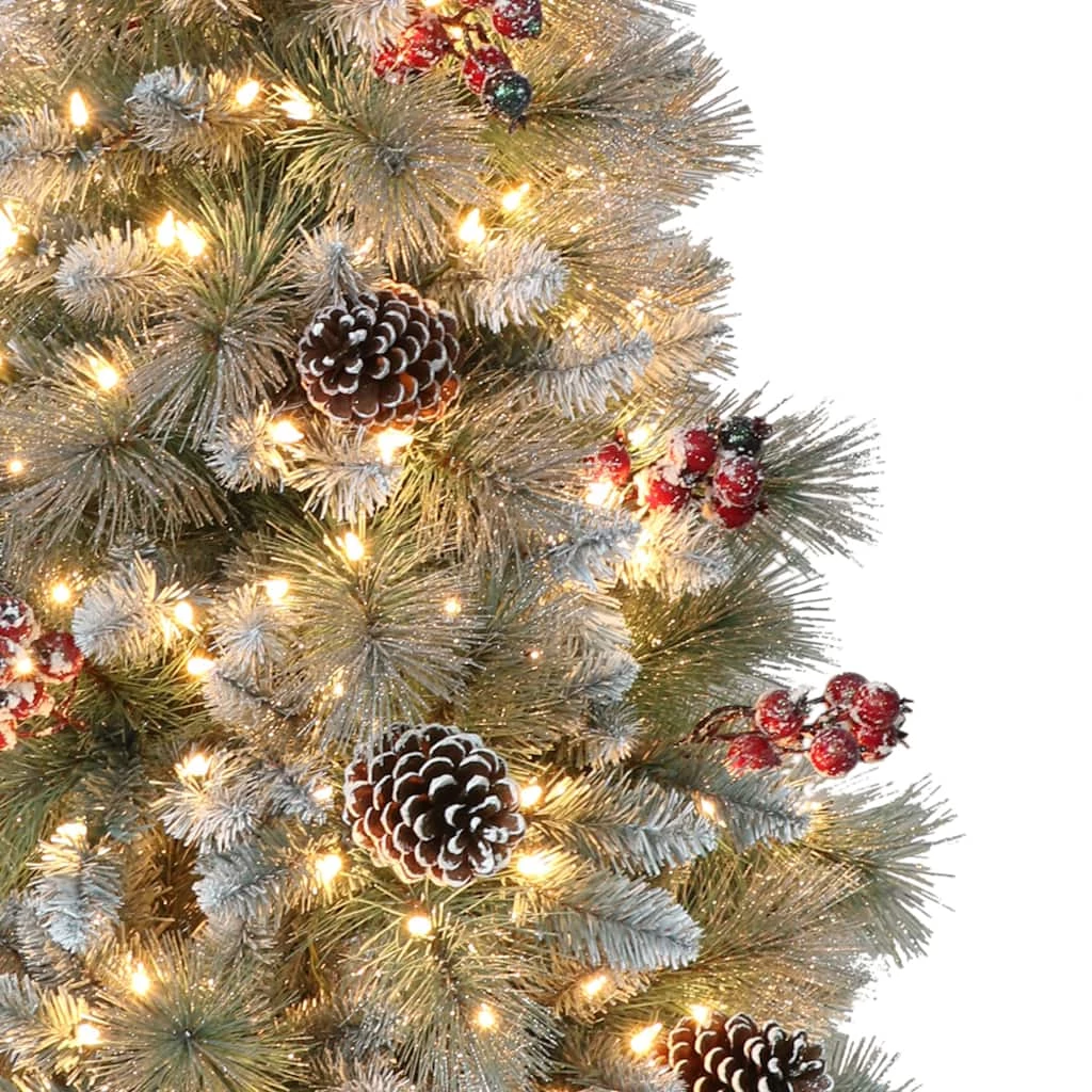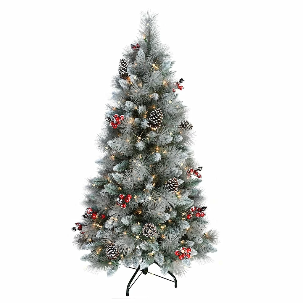 Deck the halls with the Puleo International pre-lit sterling pine tree with pine cones, red berries and silver glitter accents, inspired by lush wintry forests. The incorporated lights means no more climbing ladders to string lights, saving decorating time. When a single bulb burns out, the other lights on the strand will stay lit for your convenience. Hypoallergenic and needle-shed resistant, the tree is an great alternative to a yearly real tree purchase. With easy to assemble pieces and an included base, your house will be ready for the holidays faster than you can say “Rockin’ Around the Christmas Tree.”