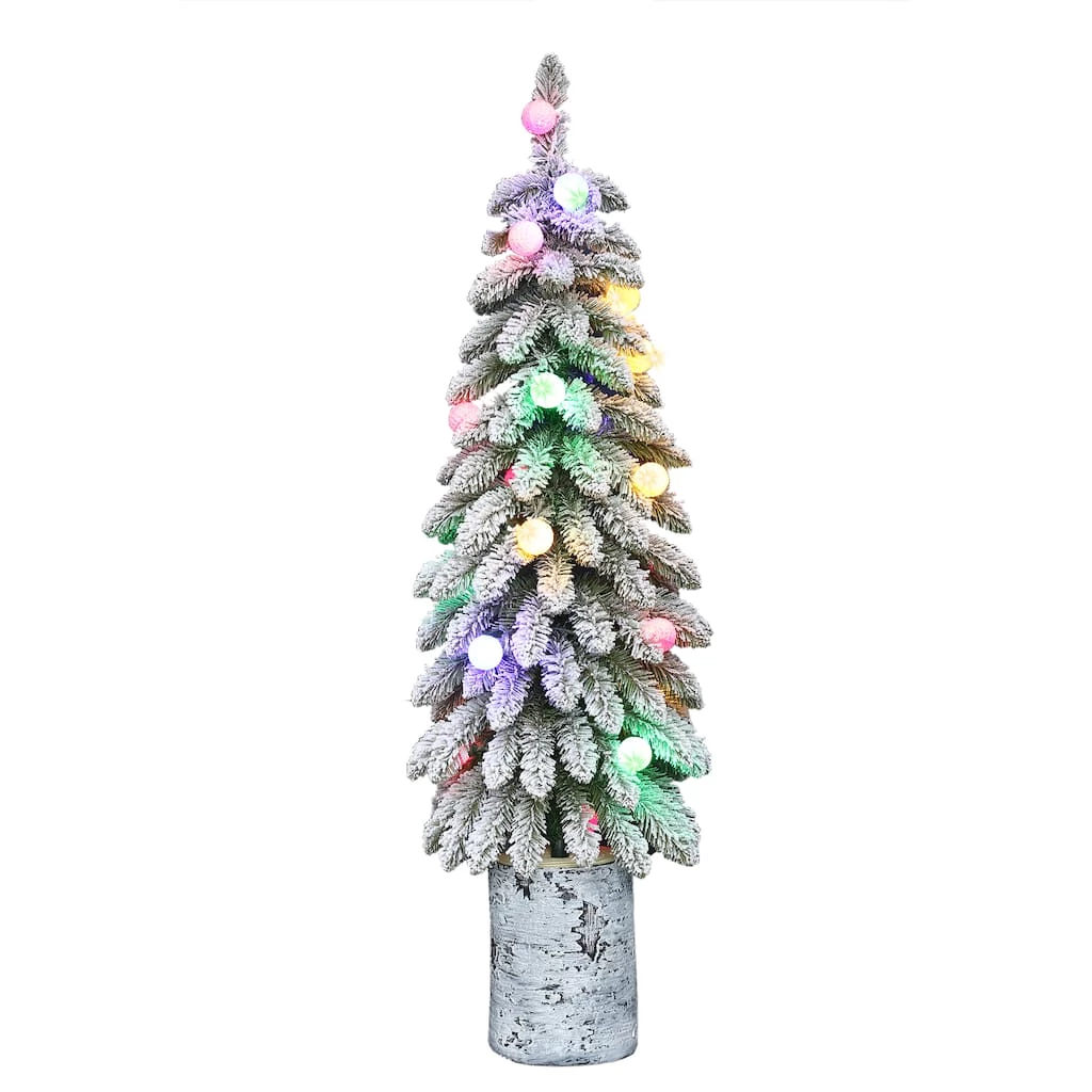 Bring the holiday spirit into your home with this Artificial Christmas Tree. This pre-lit artificial tree features flocked green branches and 20 multi-colored round LED globe lights to brighten your home for a dazzling Christmas display. With life-like pine needles and a realistic appearance, this wrapped tree is sure to add warmth to any room or space for years to come. The included sturdy potted base will safely and steadily support your tree and decorations.