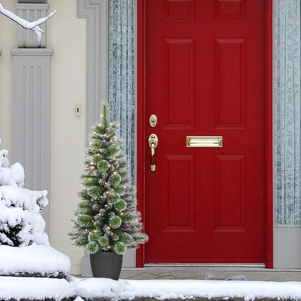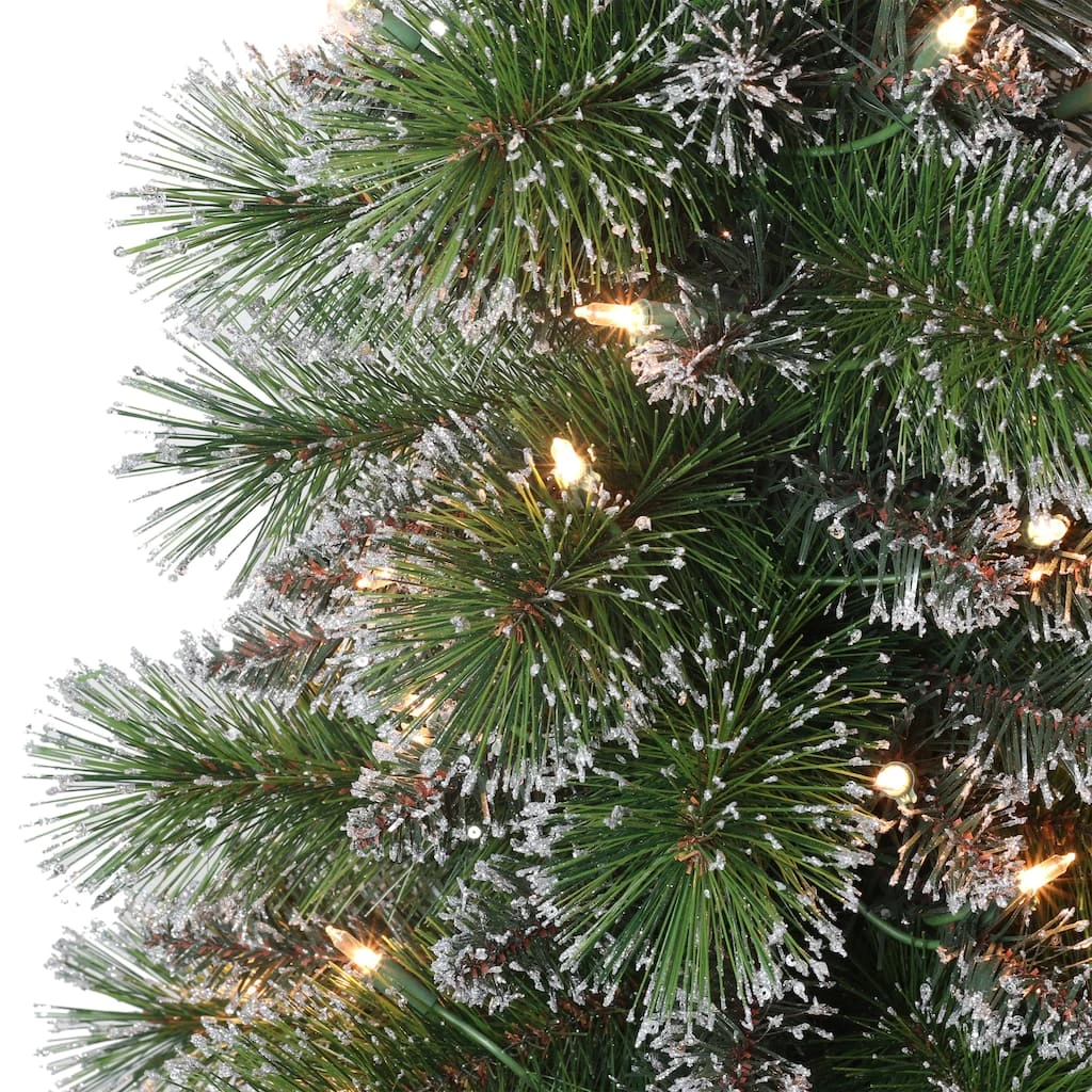 Bring the holiday spirit into your home with the Puleo International 4 ft. Potted Glitter Artificial Christmas Tree. This pre-lit artificial tree features green branches and 70 clear incandescent lights to brighten your home for a dazzling Christmas display. With life-like pine needles and a realistic appearance, this wrapped tree is sure to add warmth to any room or space for years to come. The included sturdy potted base will safely and steadily support your tree and decorations. Plus, if one bulb burns out, the rest remain lit. Constructed from flame-retardant and non-allergenic materials, this tree provides a safer alternative to real trees. The Potted Glitter Tree with 70 lights measures 48″ tall x 20″ in diameter and weighs 8 lbs., allowing for easy placement and versatile Christmas decorating anywhere in your home.