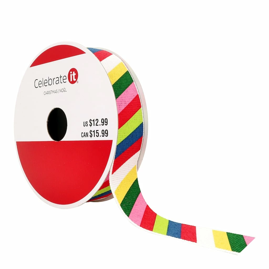 Give your Christmas gifts and craft projects a lovely bit of brightness with this colorful grosgrain from Celebrate It. Use to embellish ornaments, pair with lights and greenery to create festive garlands and wreaths, dress up floral arrangements, put the finishing touch on presents and more!