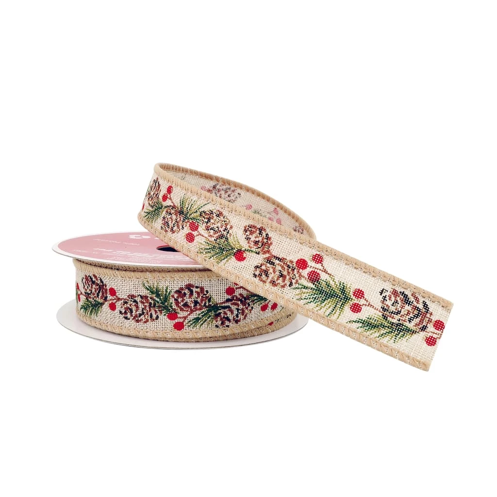 This faux linen ribbon features a pinecone design and is perfect for adding a decorative touch to your gift wrapping or DIY projects. Accent gift boxes or handmade presents, this ribbon will be a great addition to your holiday crafting supplies.