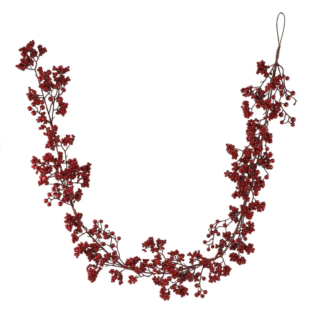 This red berry garland is perfect for adding to your winter home dΓ©cor. Display it on a mantel, window, or wall for the perfect look!