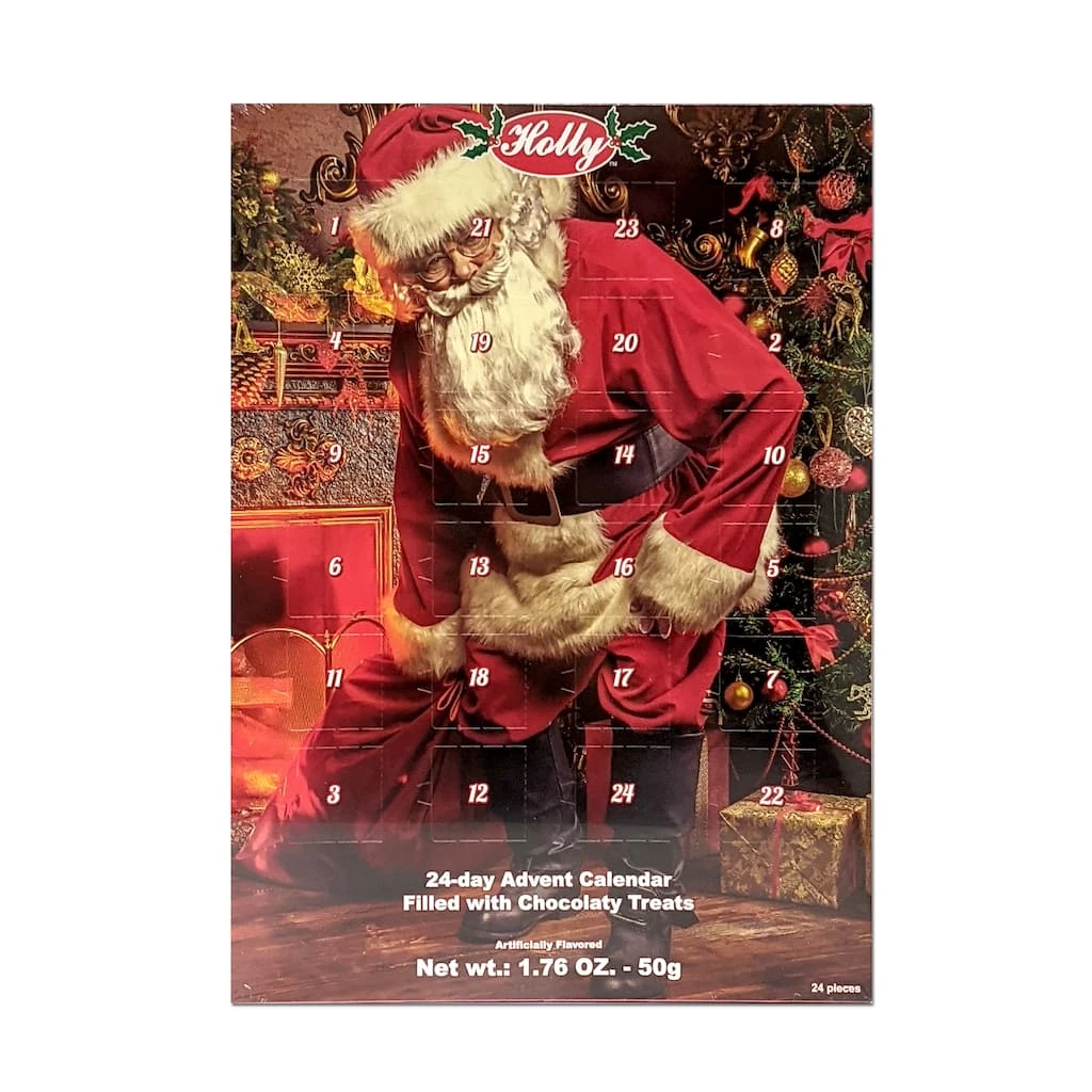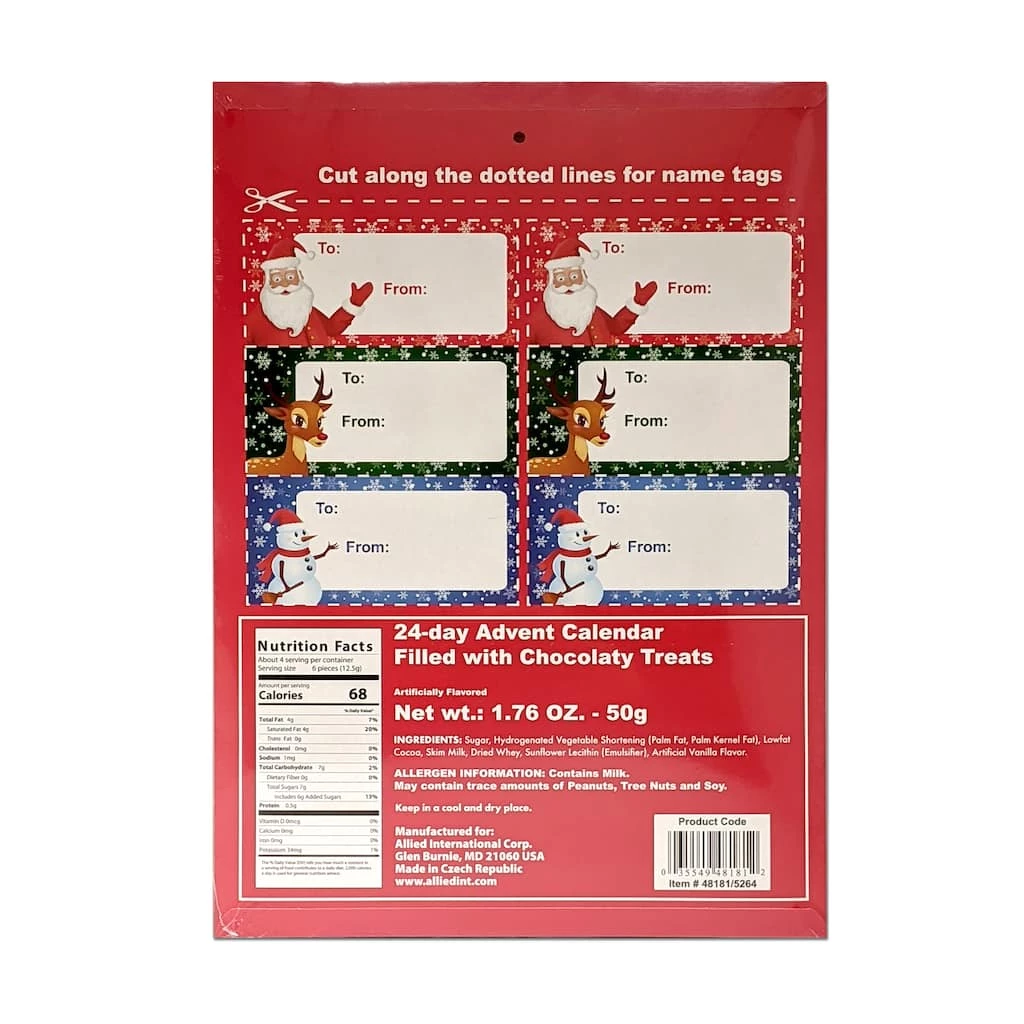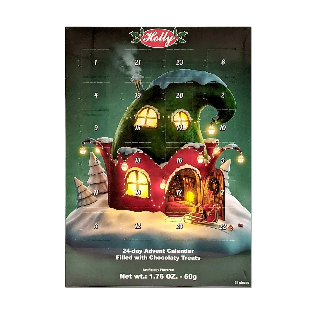 This advent calendars features 24 pieces of chocolate treats. Countdown to Christmas with this festive holiday countdown.
