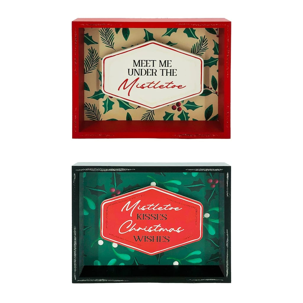 Incorporate this festive mistletoe sign into your holiday décor this season. Place it on your entryway table, mantel, desk, or any other area for added Christmas cheer!