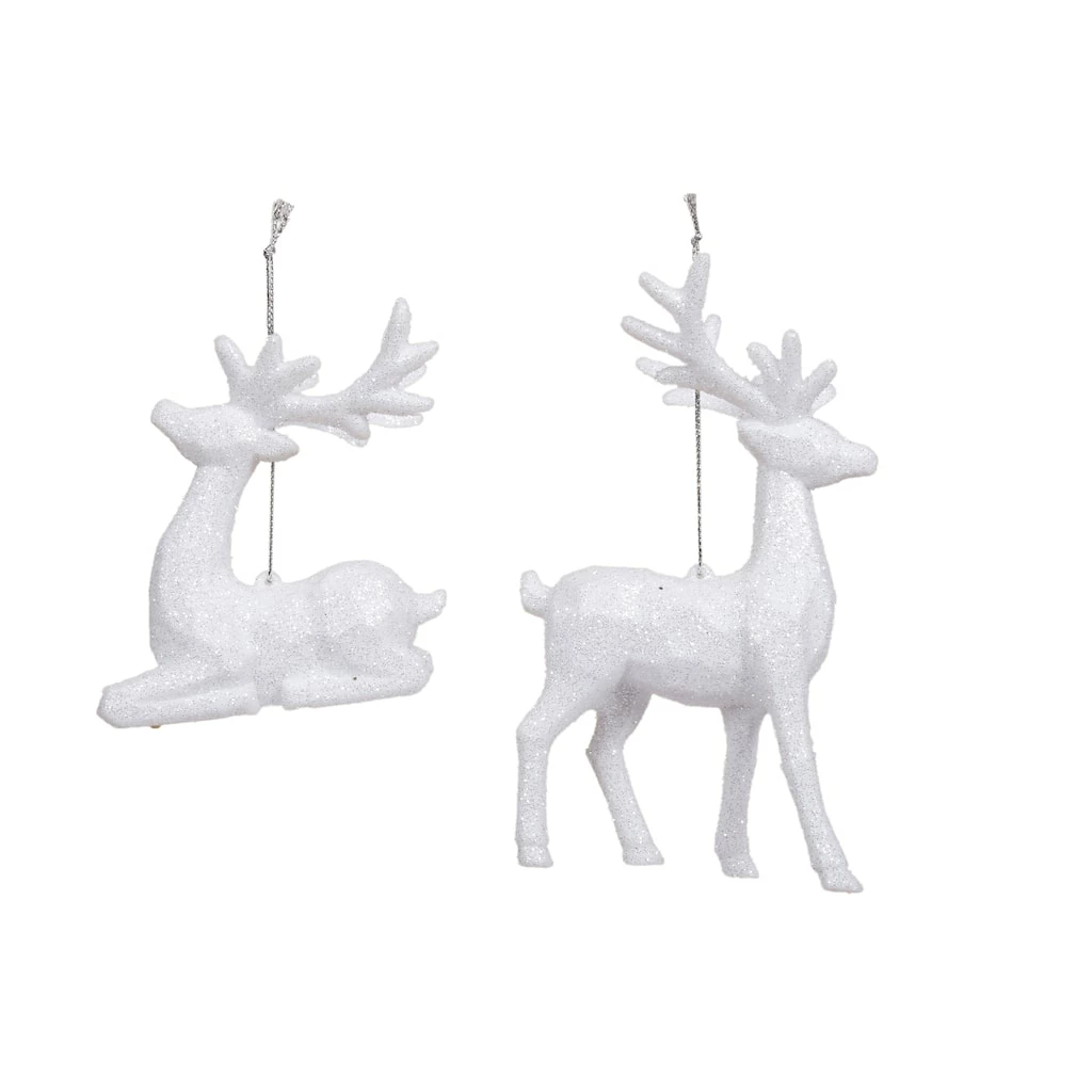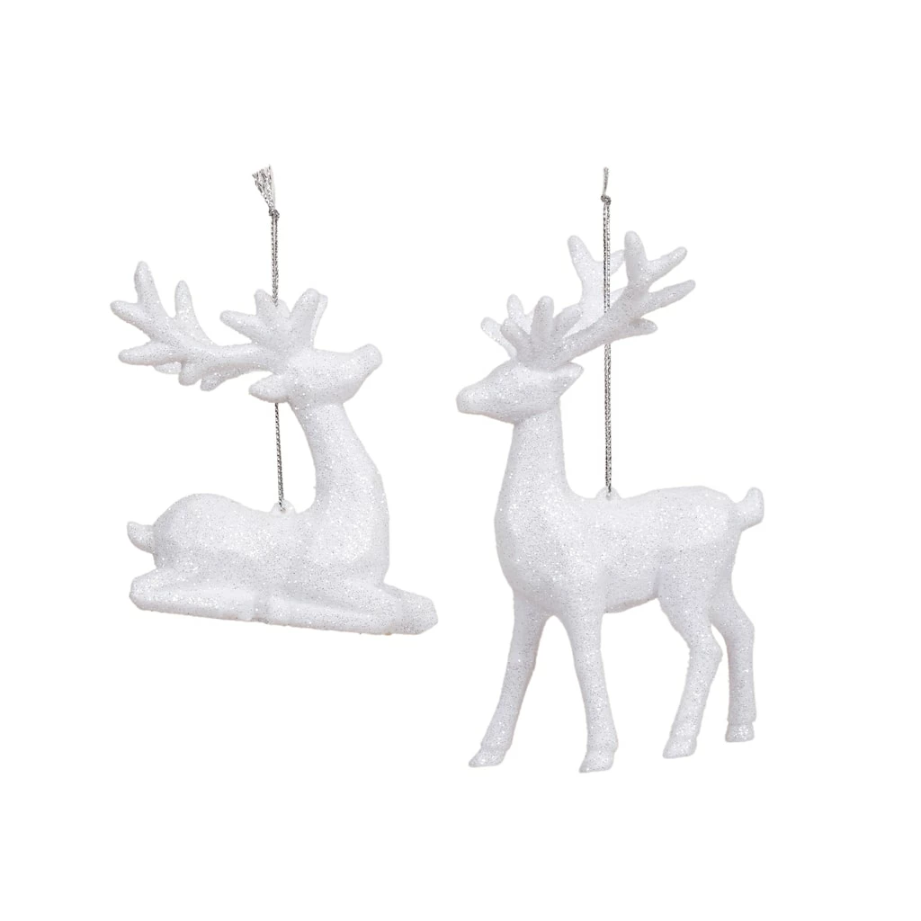 This beautiful glittery white deer ornament is perfect for sprucing up your holiday dΓ©cor. Use it to embellish a tree, wreath, or garland for a whimsical display!