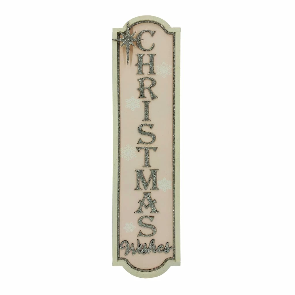 This sparkly sign is perfect for lending your Christmas dΓ©cor a festive touch. Place it on your wall or door paired with a festive garland to complete the look!
