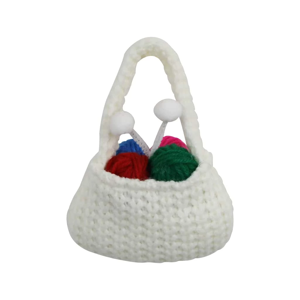 This beautiful yarn bag ornament is perfect for sprucing up your holiday dΓ©cor. Use it to embellish a tree, wreath, or garland for a whimsical touch!