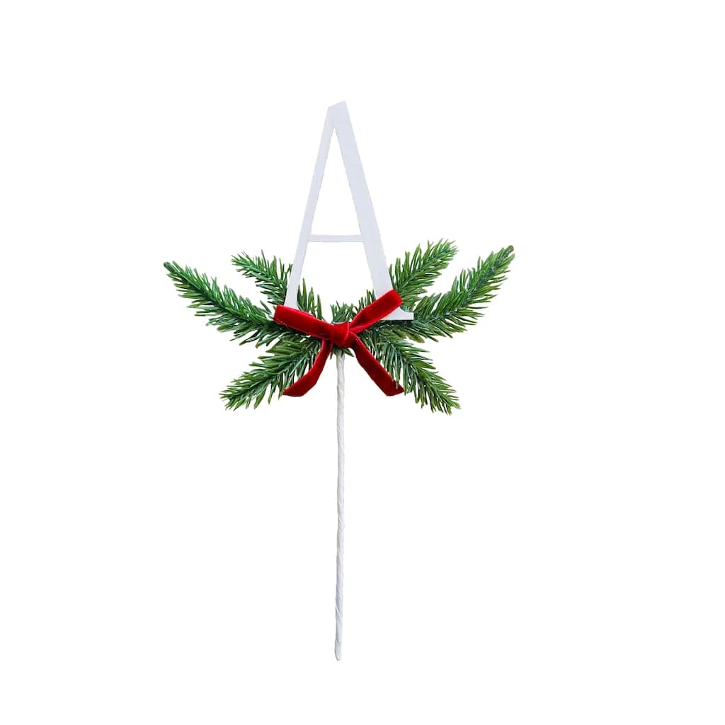 Transform your Christmas floral arrangement with this Christmas-themed letter “A” pick. Combine it with glittery poinsettias, frosted pinecones, and holly berries to create the perfect display!