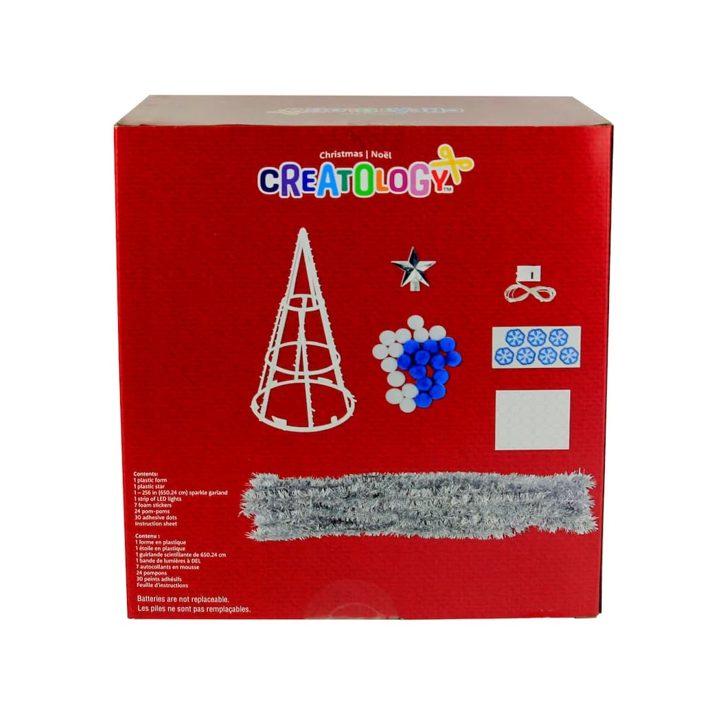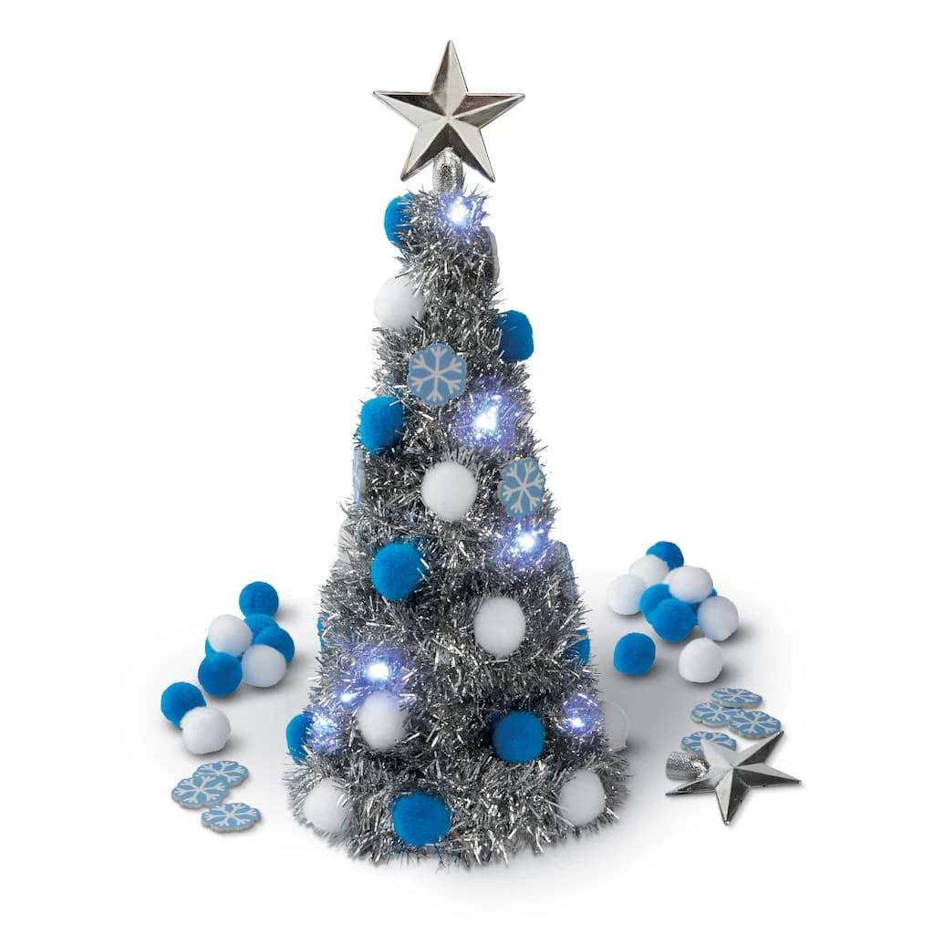 Design your own tree with this Christmas decoration kit. This kit includes pom poms and foam stickers, garland and LED lights.