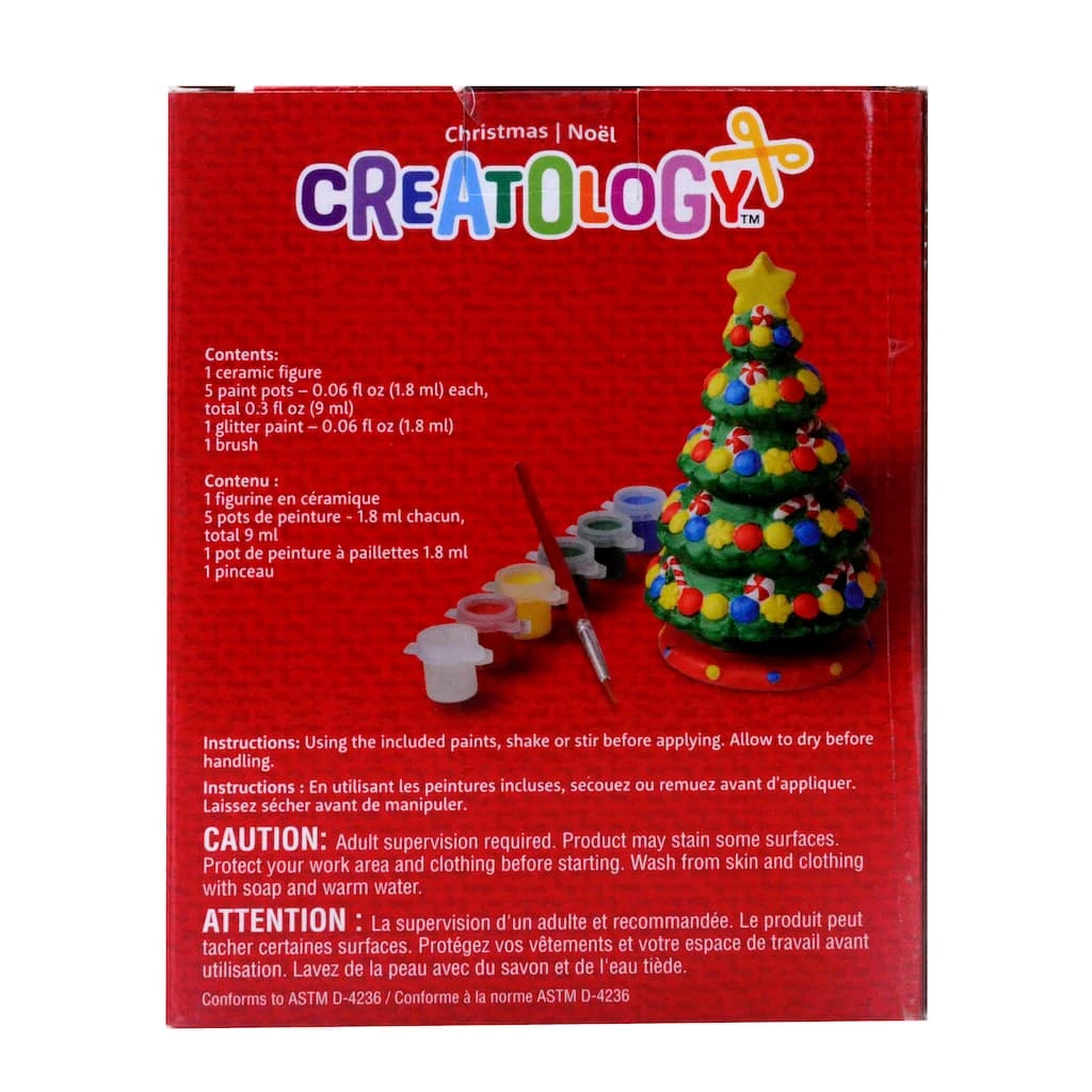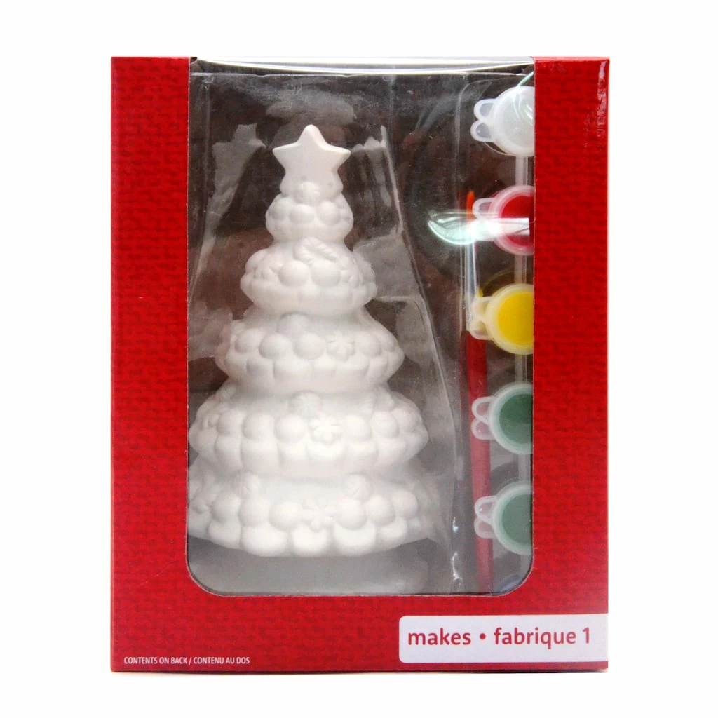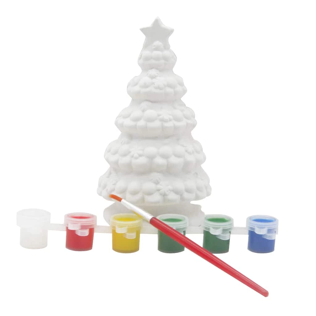 Bring in holiday cheer by painting this ceramic Christmas tree by Creatology. This kit includes all materials to transform the included piece into a holiday favorite.