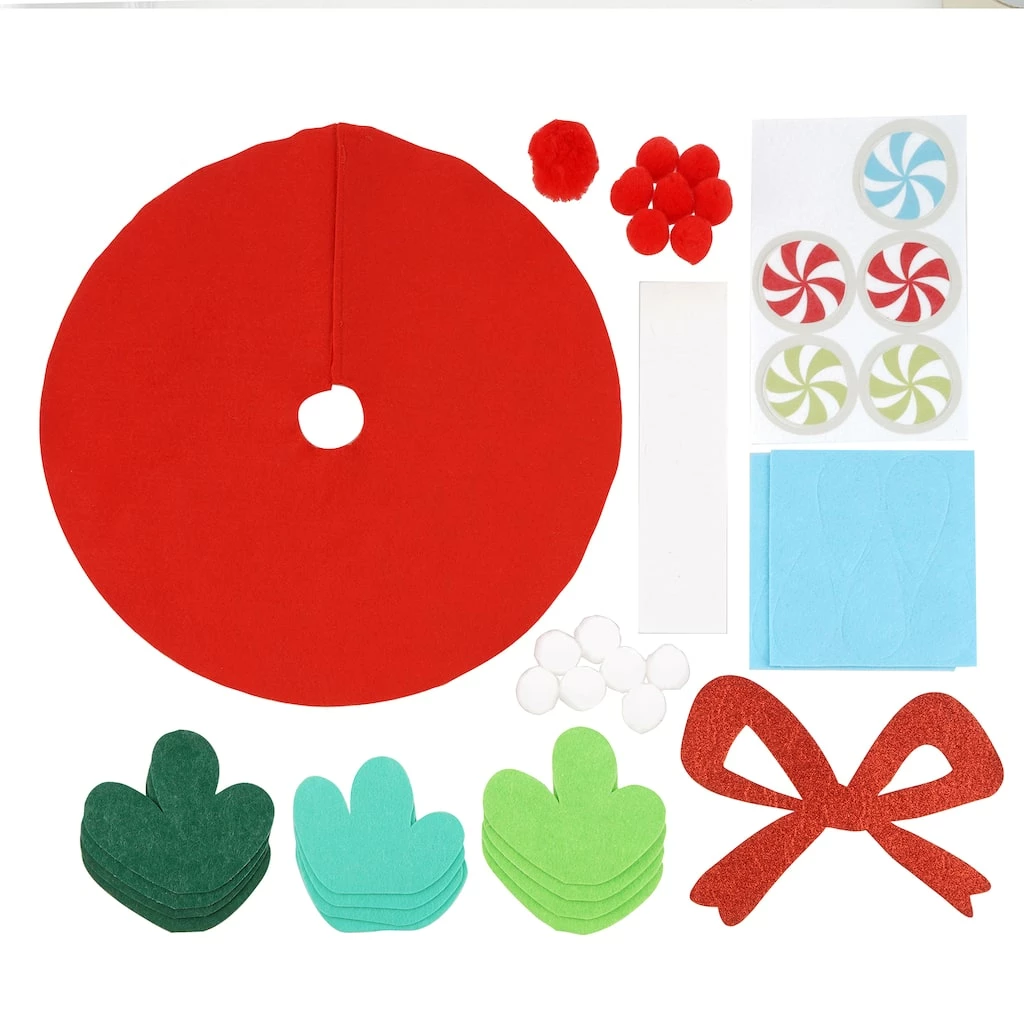 This kit includes all the essential materials and instructions required to put together a felt tree skirt. Gift it to a loved one or put it under your Christmas tree for a dash of whimsy.