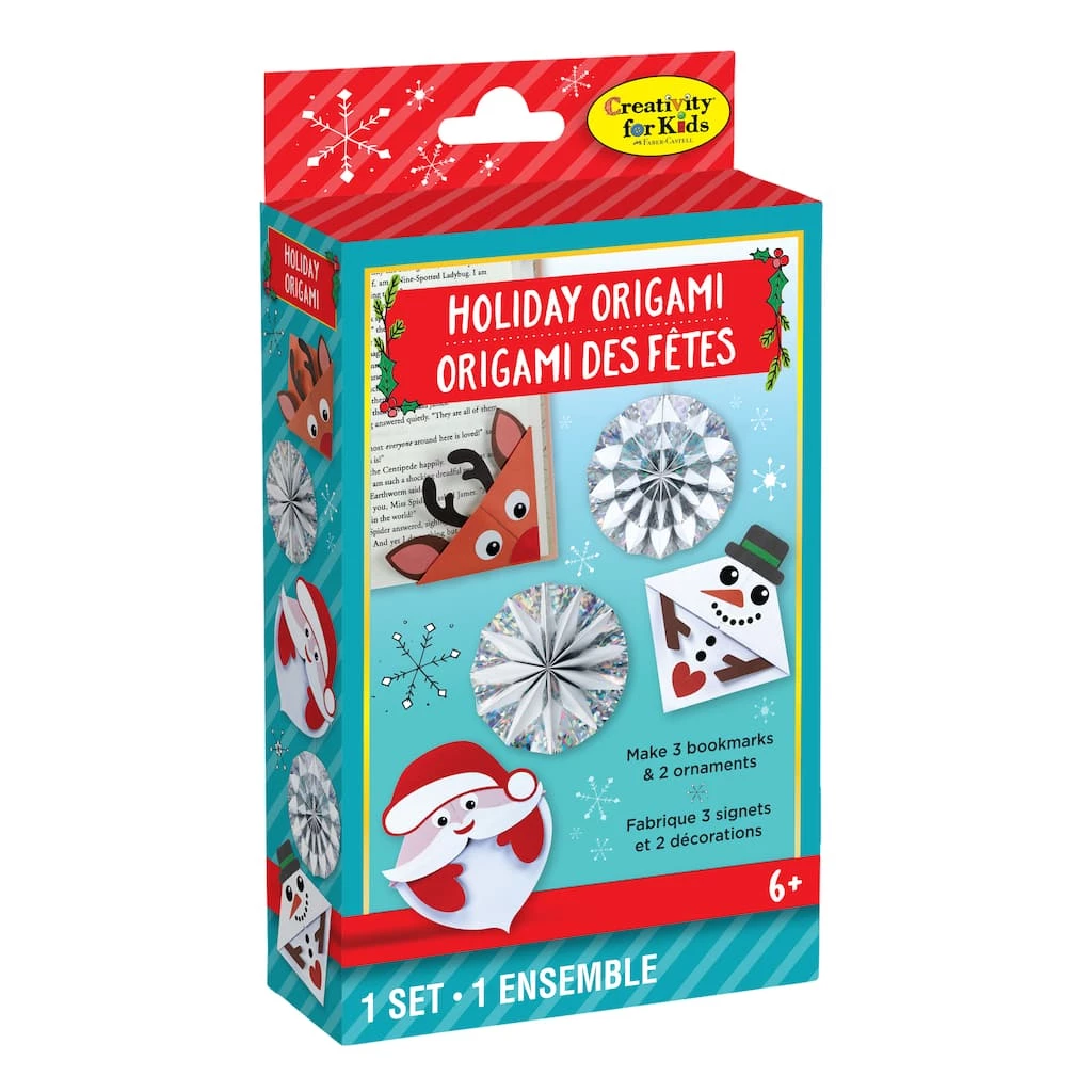 Perfect for your little one, this holiday craft kit will bring out their creativity. This kit includes paper, stickersΒ and more to make a fun ornaments and bookmarks.Β Β