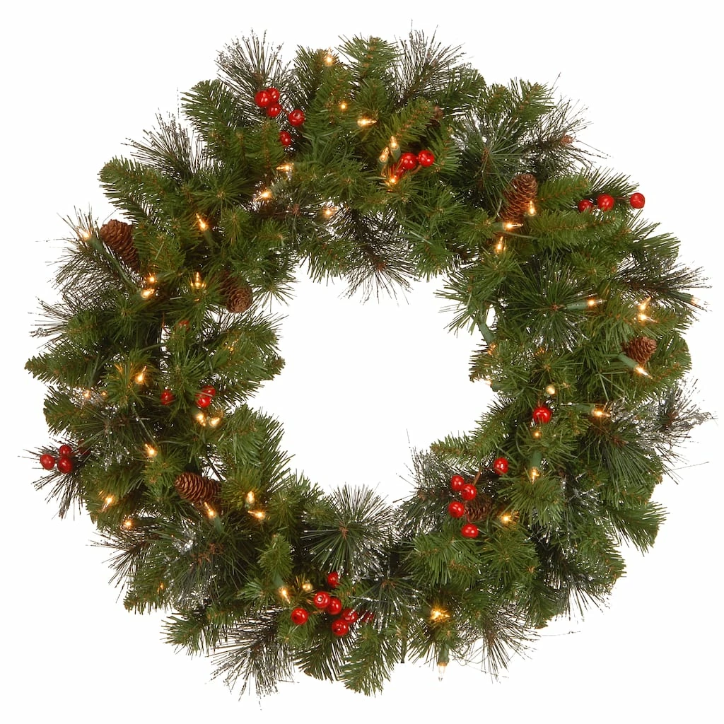 The Crestwood Spruce is a sparkling mixed branch wreath featuring bristle tips and trimmed with pinecones, red berries, and glitter. It is pre-strung with 50 Twinkly™ brand smart LED lights that offer a wide array of color and function choices. Lights are operated through a direct or home Wi-Fi connection. A downloadable App from Twinkly provides a broad selection of advanced and unique effects as well as light feature updates. This attractive wreath can be displayed on doors, walls, and windows in indoor or covered outdoor locations.