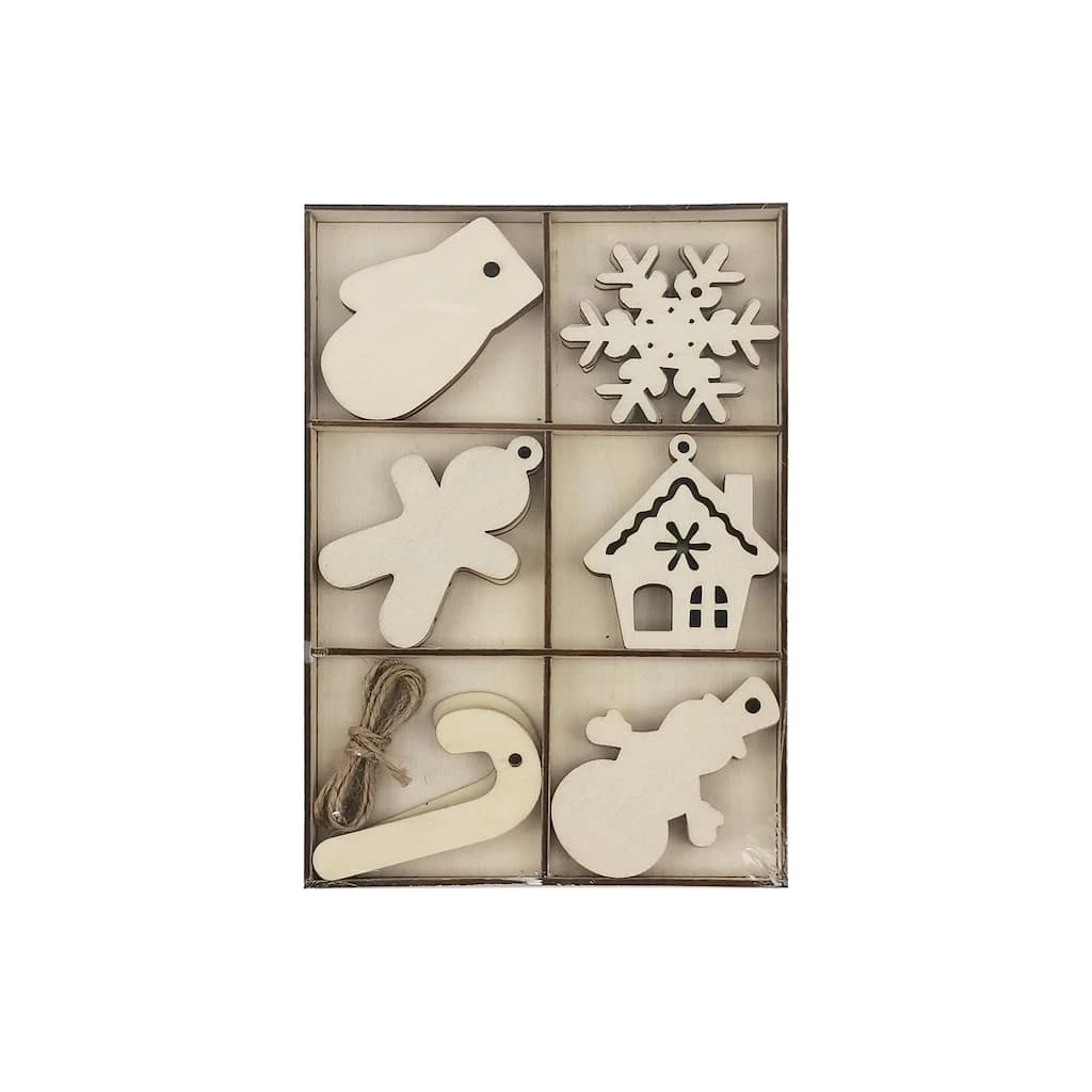 Bring your own special flourish to your holiday gifts with these unfinished wooden tags shaped like snowflakes, gingerbread houses, candy canes and other traditional icons from Make Market. Use stencils to add lovely designs and embellish with paint, glitter and ribbon for festive presents sure to invite Christmas cheer!