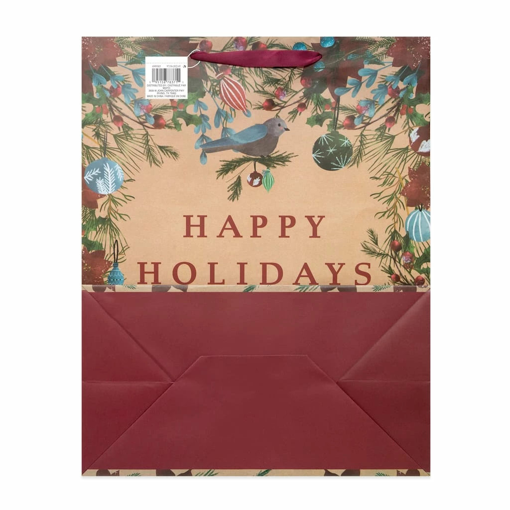 This gift bag from Celebrate It is a lovely way to dress up a present this holiday season. Featuring a floral Happy Holidays theme, this bag is ideal for gifting candles, books and journals, art supplies, large plushies and more!