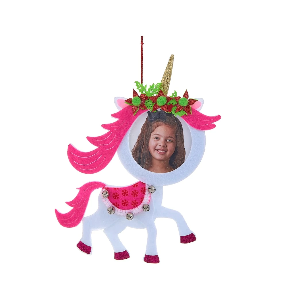 Display an adorable photo of your loved one in this unicorn ornament frame. It’s perfect for showing off on a Christmas tree, garland or wreath for years to come. Paired with lights and other Christmas decorations, it’s guaranteed to add a personal touch to your dΓ©cor.