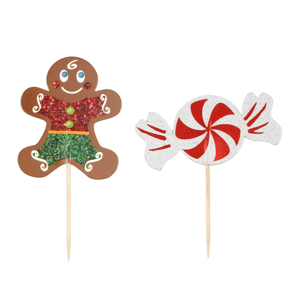 These glittery treat toppers are perfect for embellishing your festive cupcakes. They are ideal for displaying at your holiday parties or other fun special occasions.