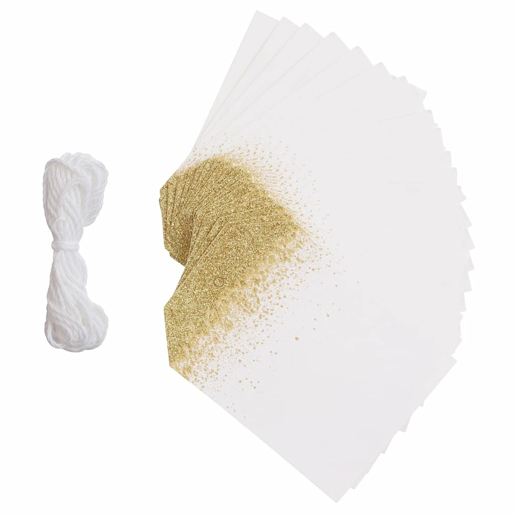 Personalize gifts with these lovely holiday tags. Complete with strings, this set includes 20 gold glitter tags and is perfect for expressing your sentiments this Christmas season.