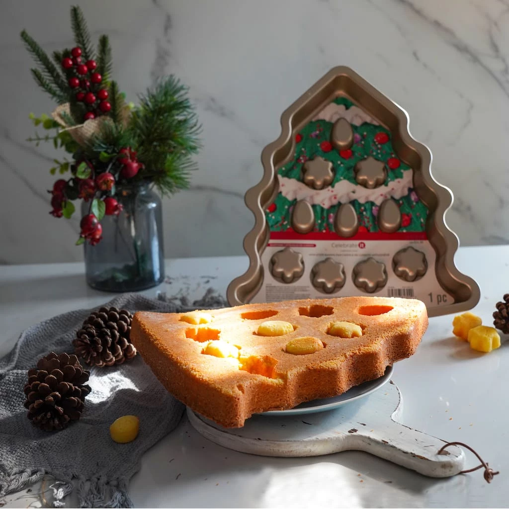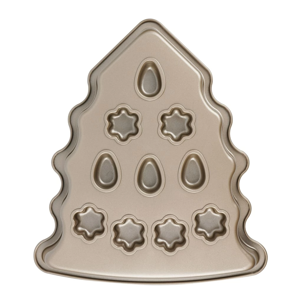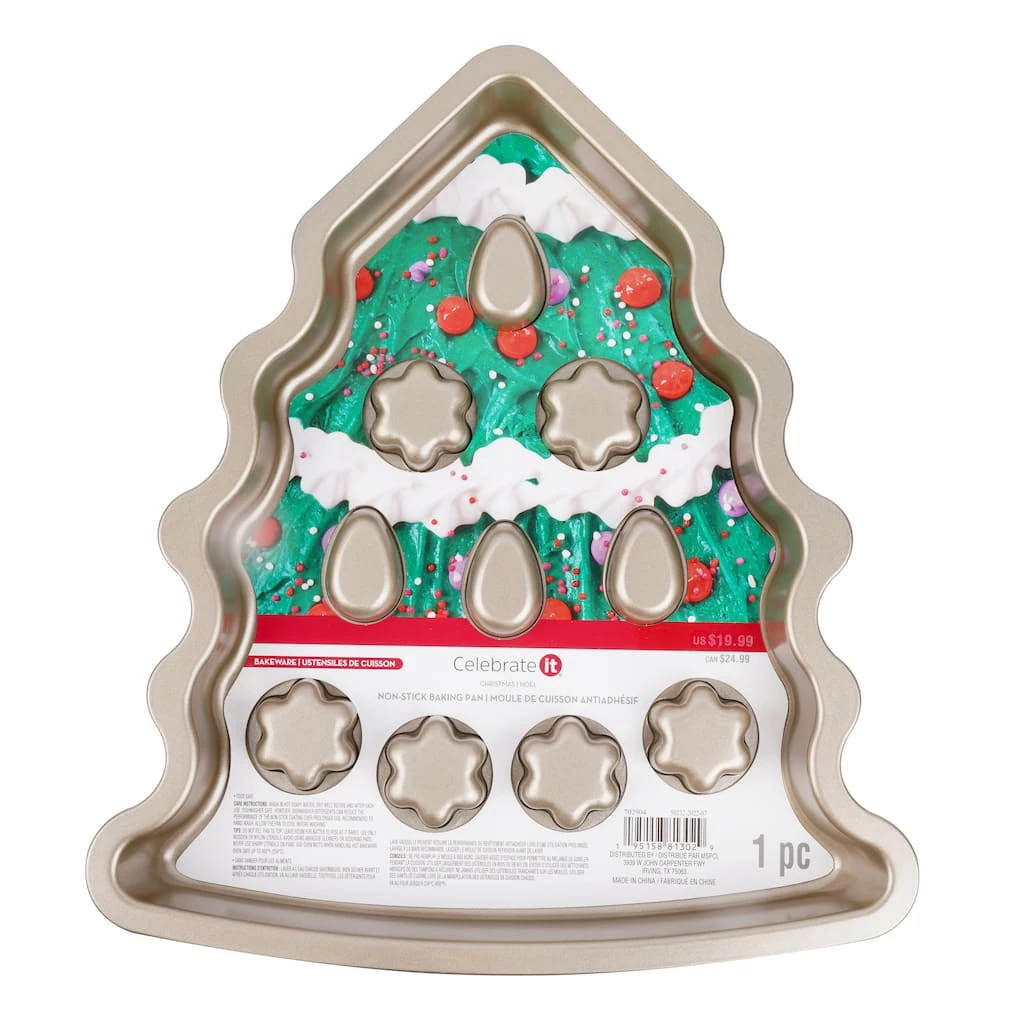 Create a fun and tasty treat with this baking pan. It features a Christmas tree design in gold carbon steel material. Durable, yet, lightweight, this pan will be a great addition to you holiday baking tools.