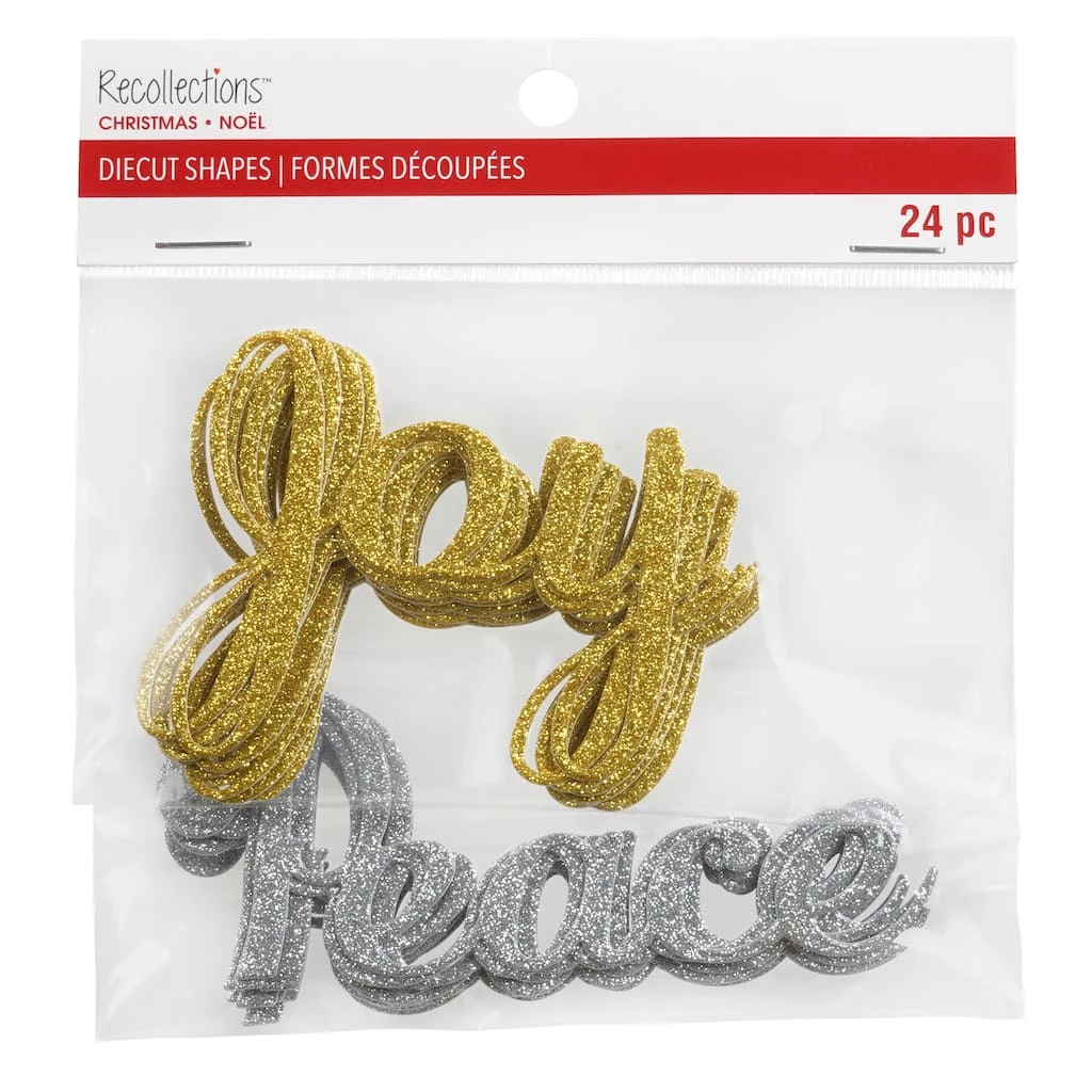 Adorn your journals, scrapbooks, and more with these joy and peace glittery shapes by Recollections. They will be a fun addition to your paper crafting projects this holiday season.
