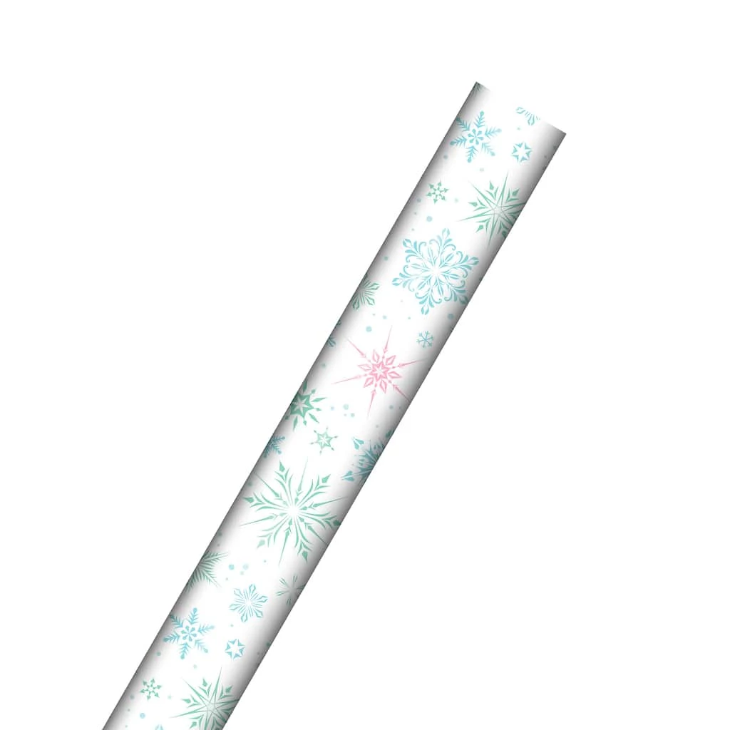 Featuring a trendy pink, blue and green snowflake design, this charming wrapping paper is a fantastic way to dress up your holiday presents with flair. Pair it with shimmery ribbons and bows and add complementary tags for gifts sure to stand out as you celebrate this Christmas season with your loved ones.