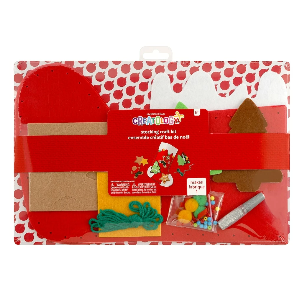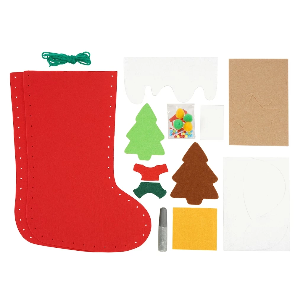 Create a whimsical felt stocking for your holiday season! This kit features a gingerbread man, Christmas tree and star.