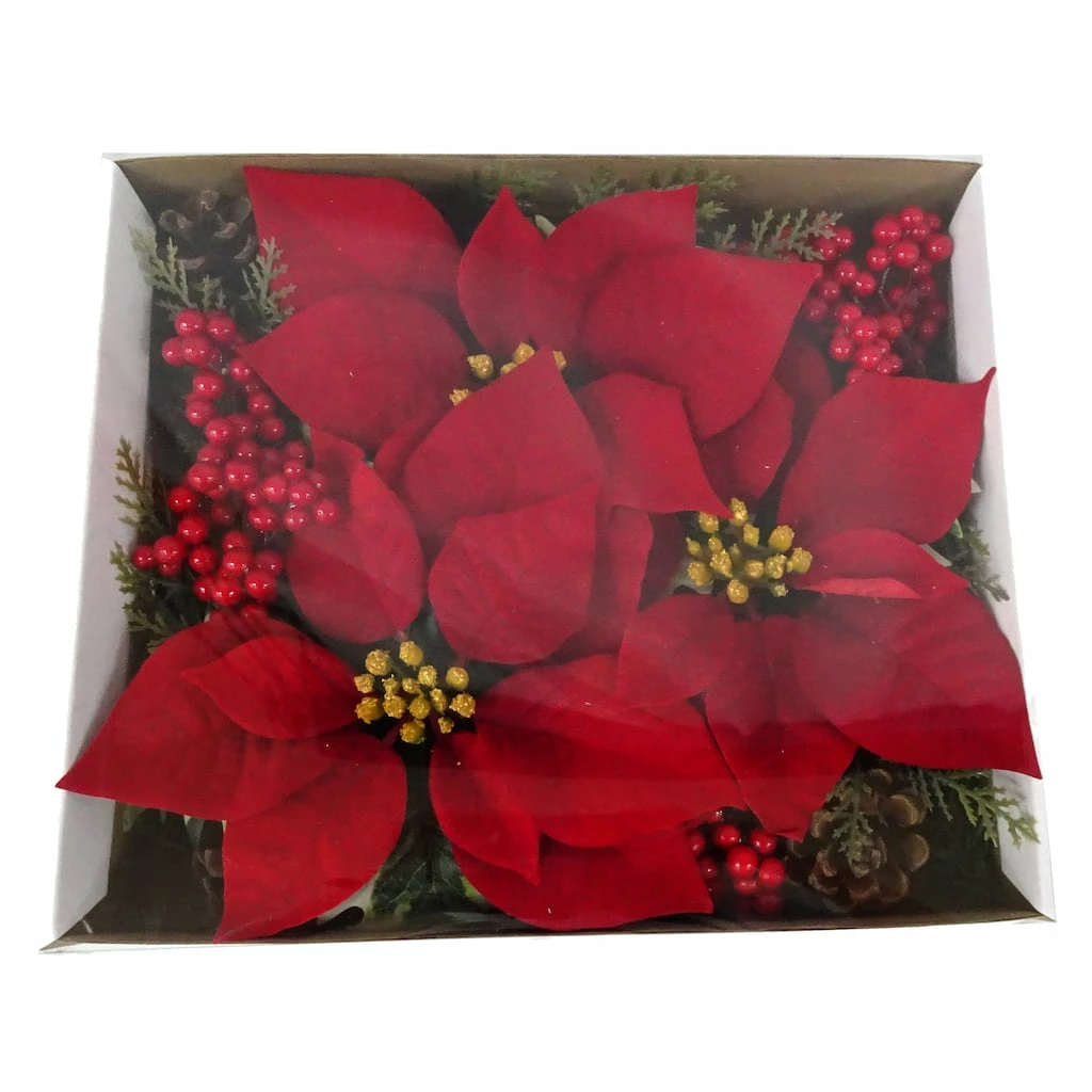 Perfect for your DIY Christmas projects, use these poinsettia accents to create a pretty wreath, centerpiece and more. Included are poinsettias, pine, berries and pinecones.