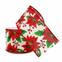 Discount β¨ 2.5″ x 20ft. Wired Faux Linen Poinsettia Ribbon by Celebrate It® π Christmas π