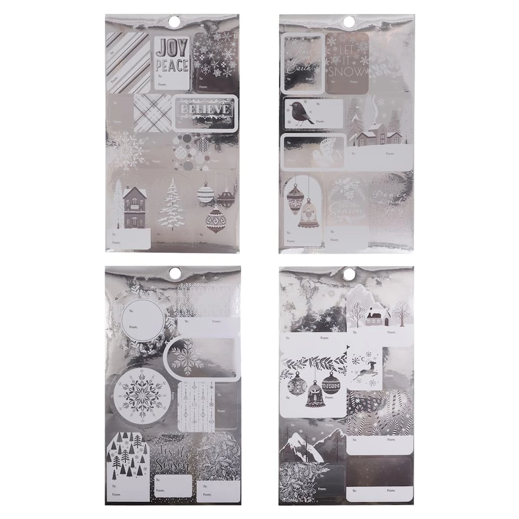 - Includes assorted silver foil and white designs